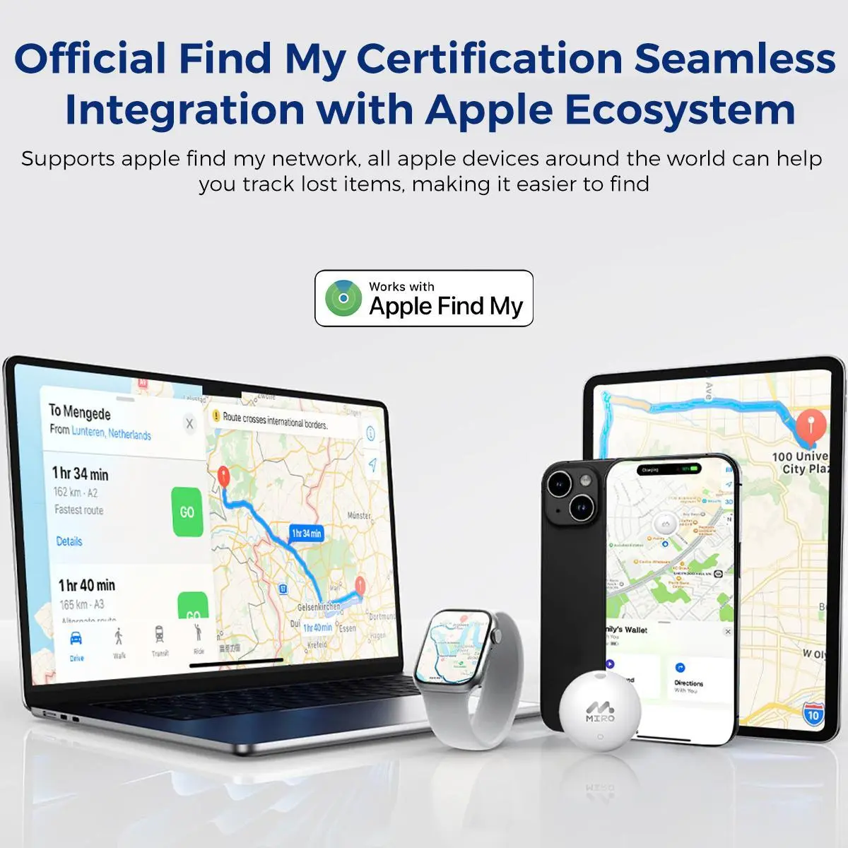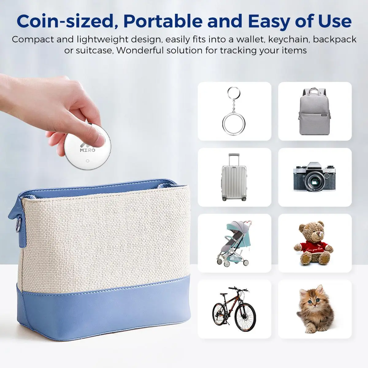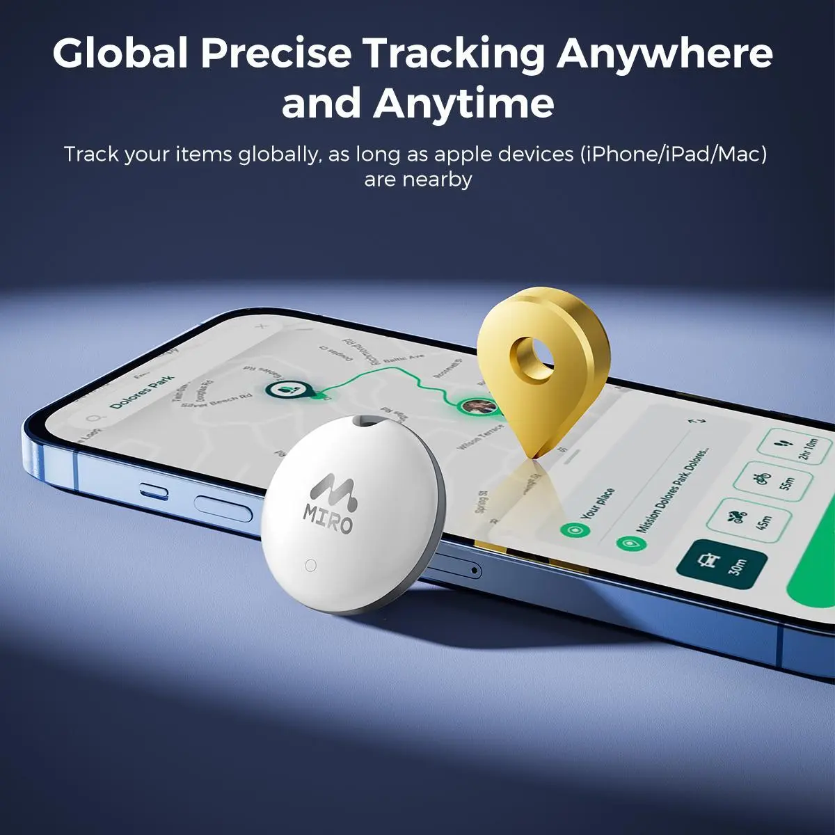 🔍 Product Overview- Brand: Miro- Model: T1R- Compatibility: Apple Find My (iOS only)- Design: Exclusive patented, AirTag alternative- Tracking: Precise, global tracking- Bluetooth Range: Up to 30 meters- Battery: CR2302, replaceable, 8-12 months standby time- Sound Volume: 85dB, loud and clear- Waterproof Rating: IPX6, water-resistant- Integration: Seamless with all Apple devices, Siri voice assistant compatible