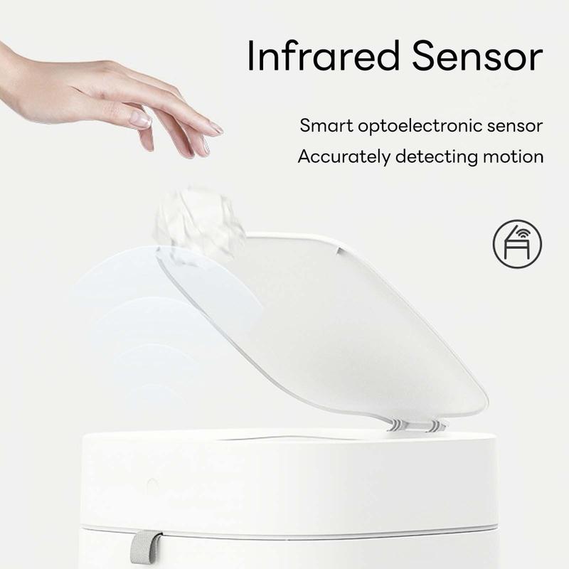 The built-in high-sensitivity infrared sensor detects your hand within a 35cm range, triggering the lid to open and close automatically. This helps prevent odor spread and bacterial contamination, maintaining cleanliness in your house.