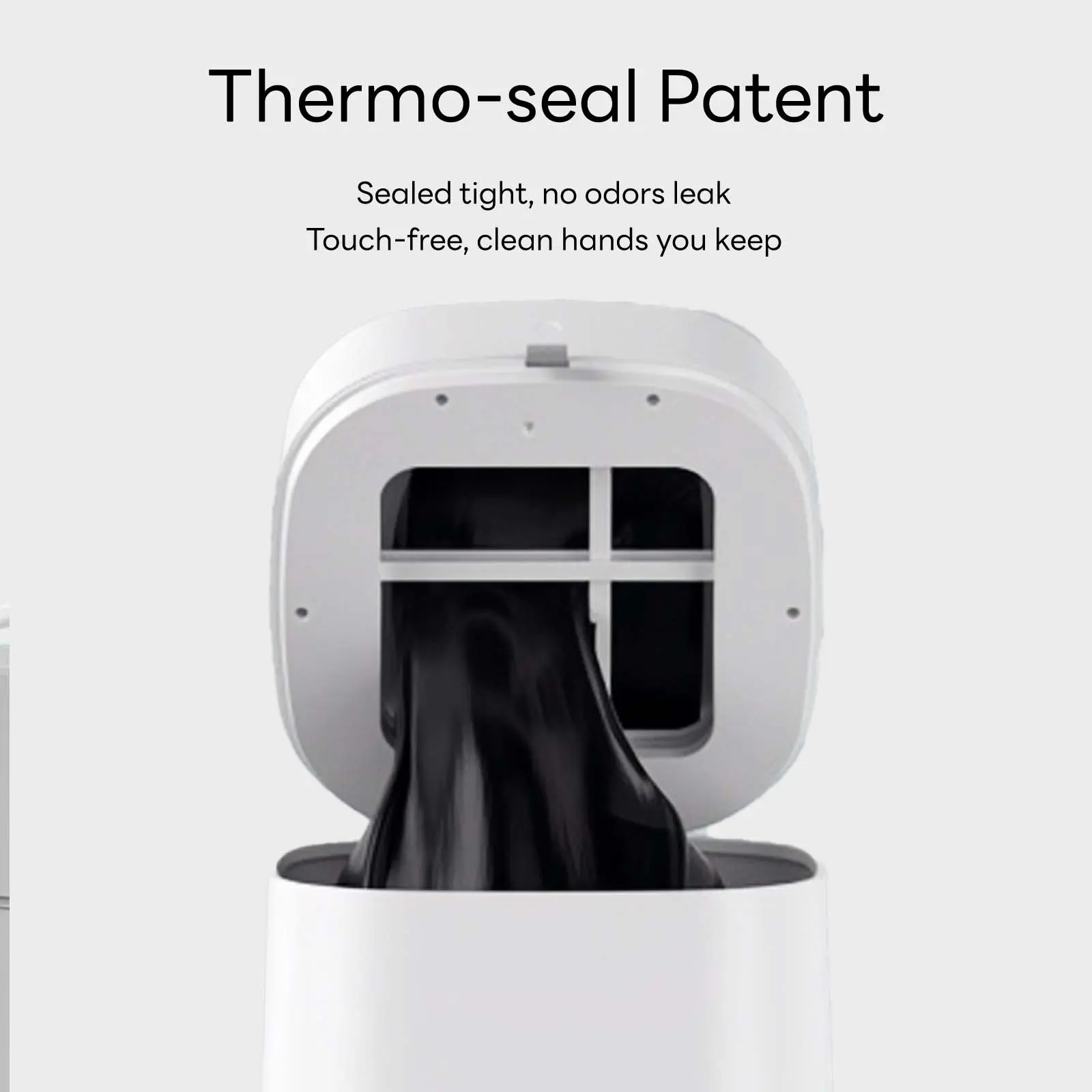 Featuring patented Thermo-Seal technology, simply press and hold the function button for 3 seconds—the bin will automatically seal the full garbage bag. Once the sealed bag is removed, a new one is automatically dispensed in place. The entire process requires no manual contact with waste, ensuring zero mess and zero bacteria.