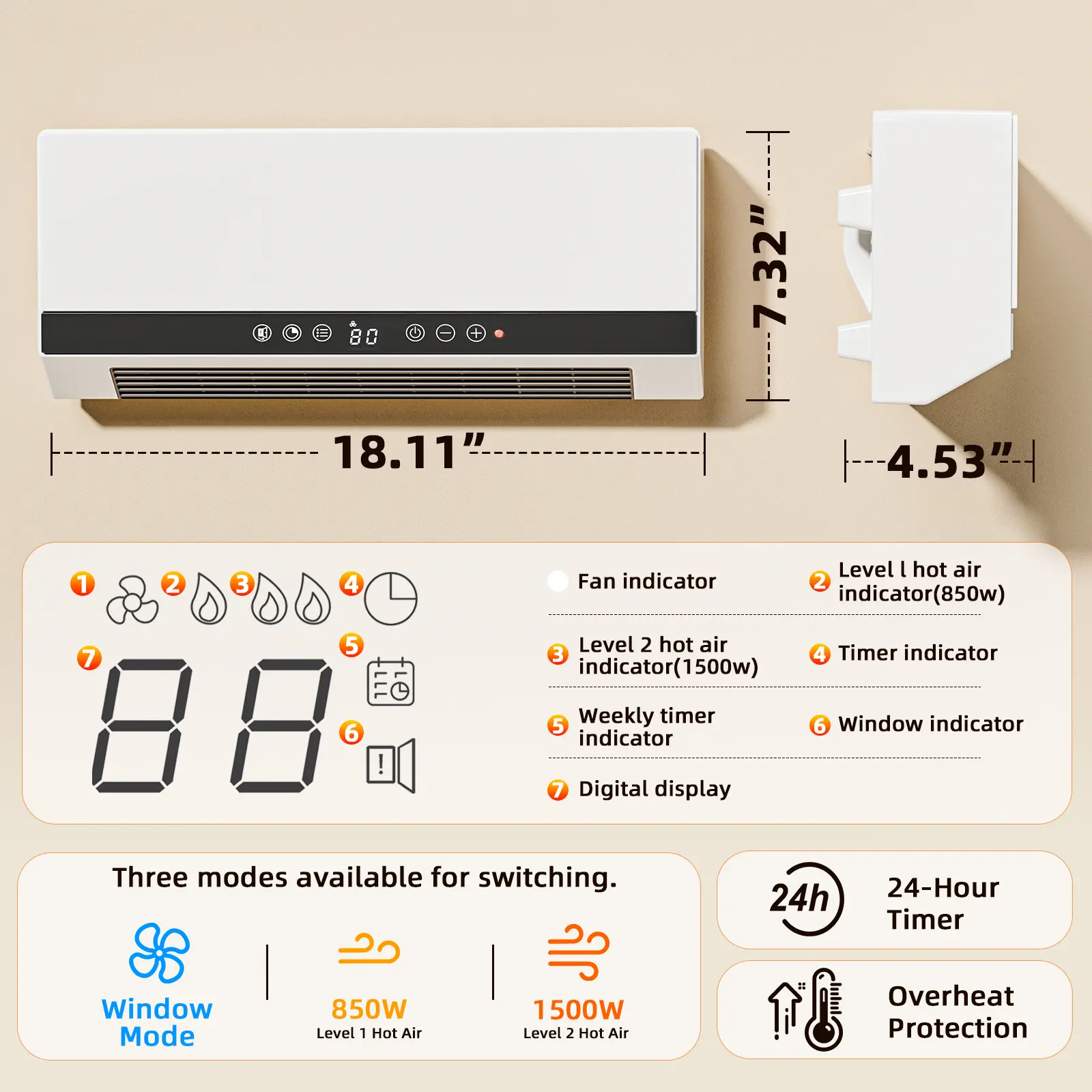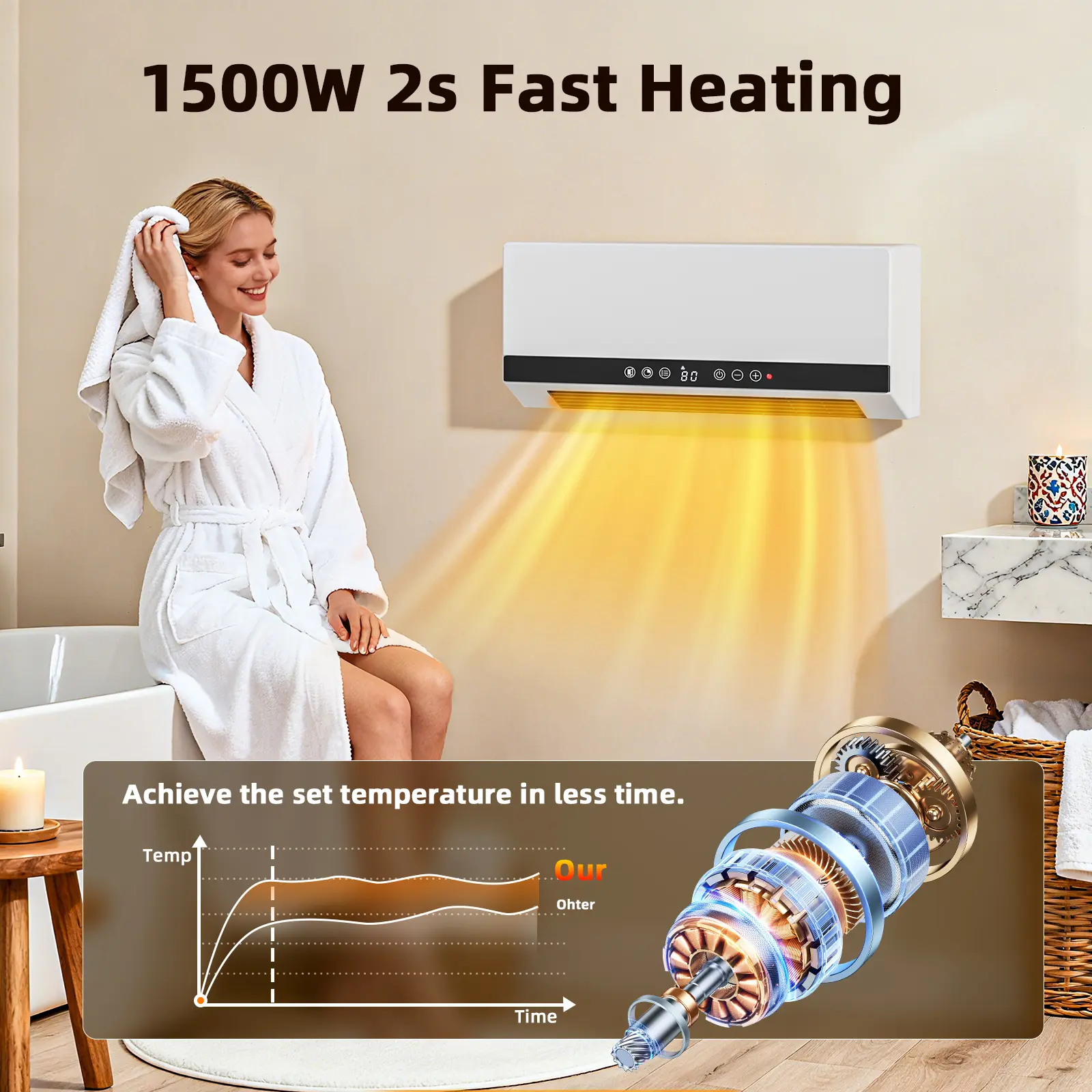 Calienta rápido y de forma uniforme. Tiene control remoto, termostato ajustable y temporizador de 24 h, lo que lo hace muy práctico. Diseño moderno, silencioso y fácil de instalar. Ideal para habitaciones u oficinas. Muy buena compra. 🔥y ahorra energía