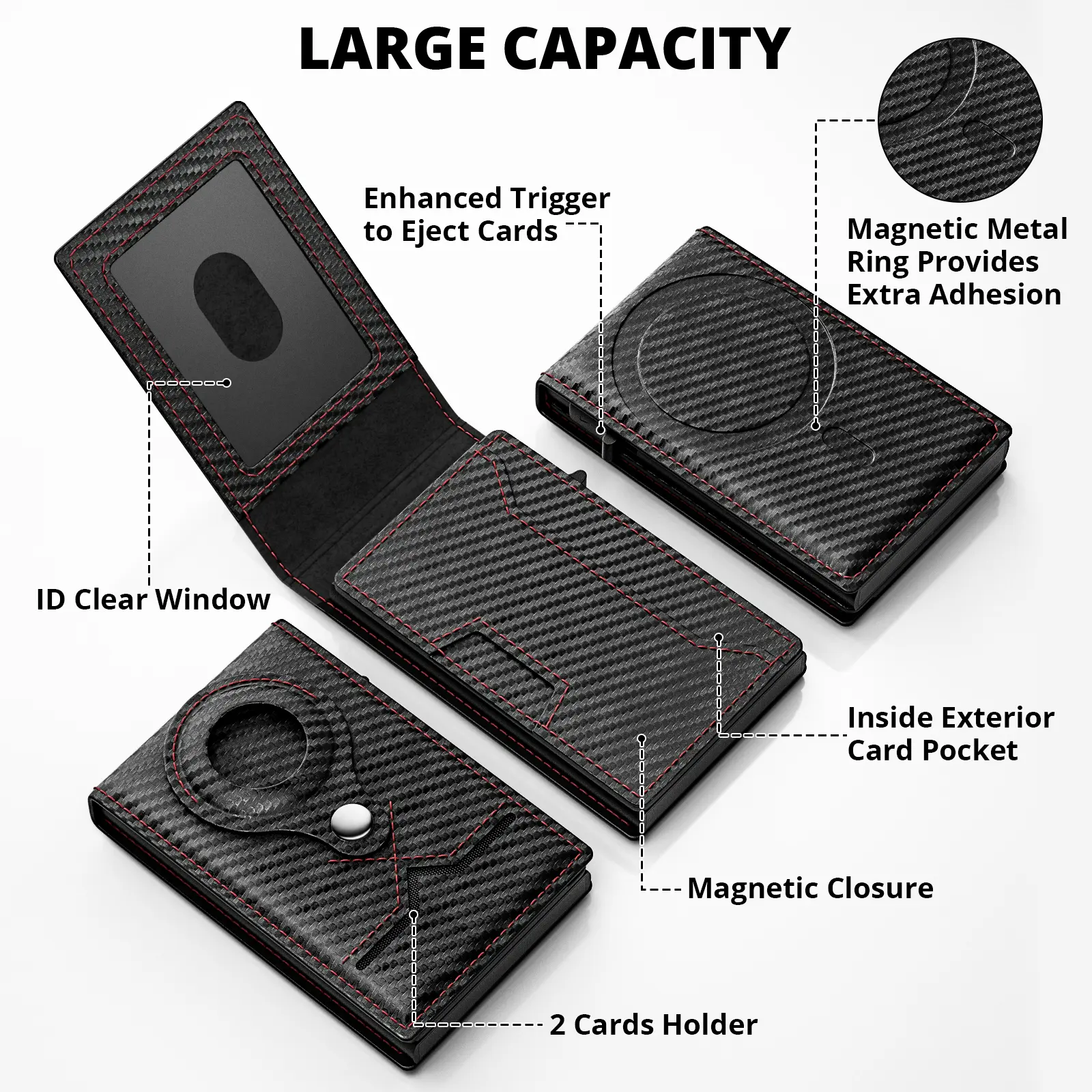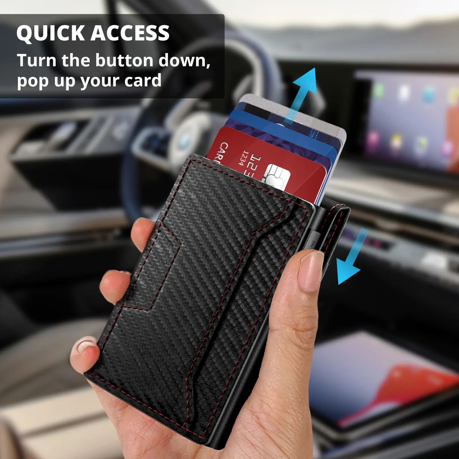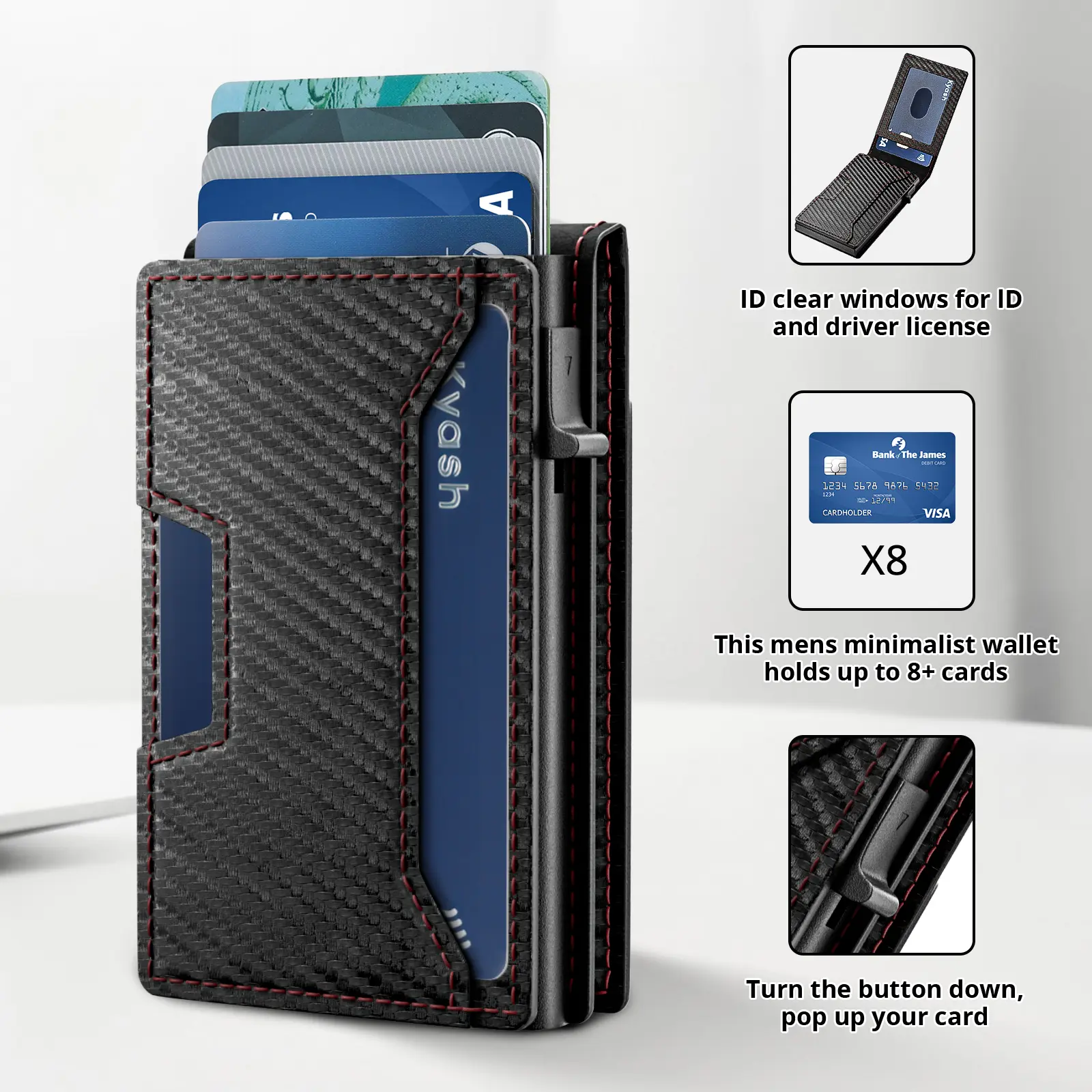 5. Mens Smart Wallet Card Holder: Pop Up Card Case, Leather, RFID Blocking, Slim, Minimalist, Thin, Front Pocket, 7-12 Card Capacitiy | ID Window
