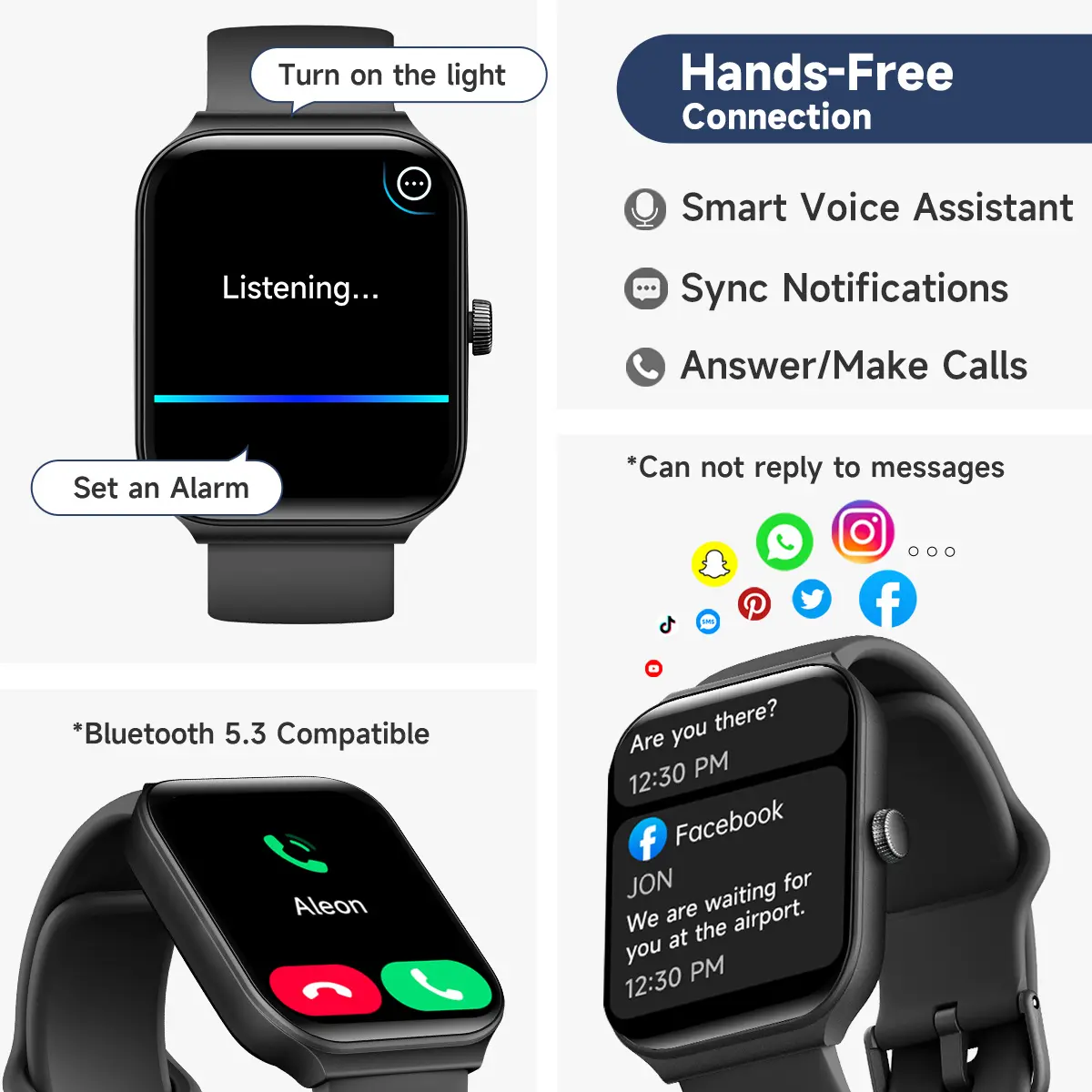 This is just like the Apple Watch the only difference is not being able to text back on it and using the Apple Pay from the watch overall I love it the battery last 3-5 days on a full charge and the calls sound clear and the other person can hear me just as clear I love this thing and the price is amazing even my wife wants one now you can even set your own picture as the screen like the Apple one 100% recommend
