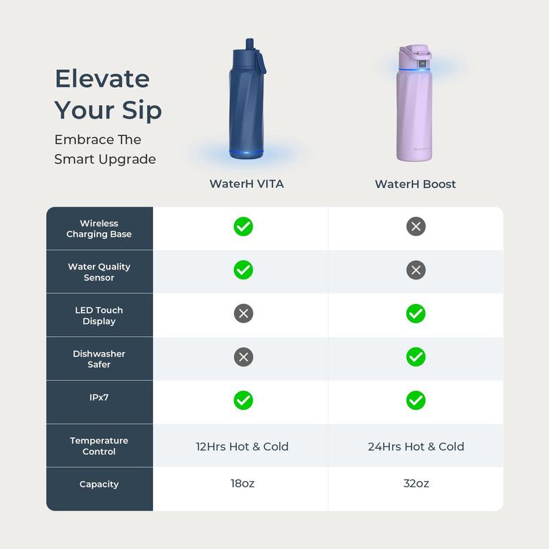 Great water bottle! Keeps water cold, tracks intake accurately, allows customizable sip reminders, and shows battery life.