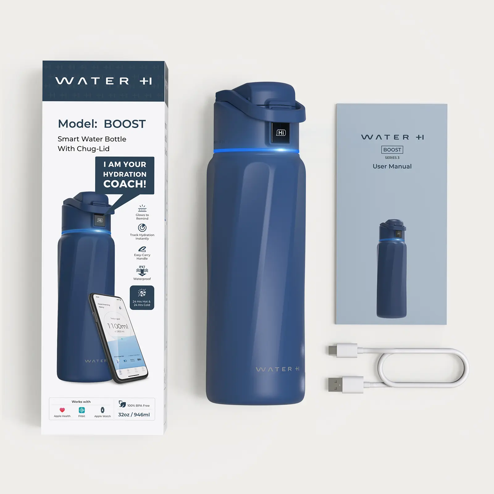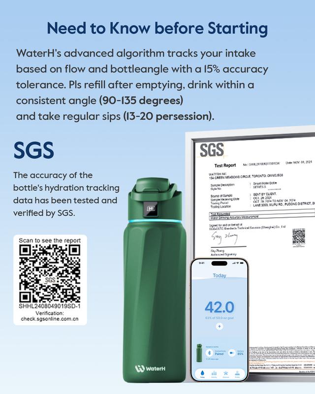 ·To achieve optimal hydration tracking accuracy, place the bottle upright on a flat surface for 2-3 seconds after drinking.