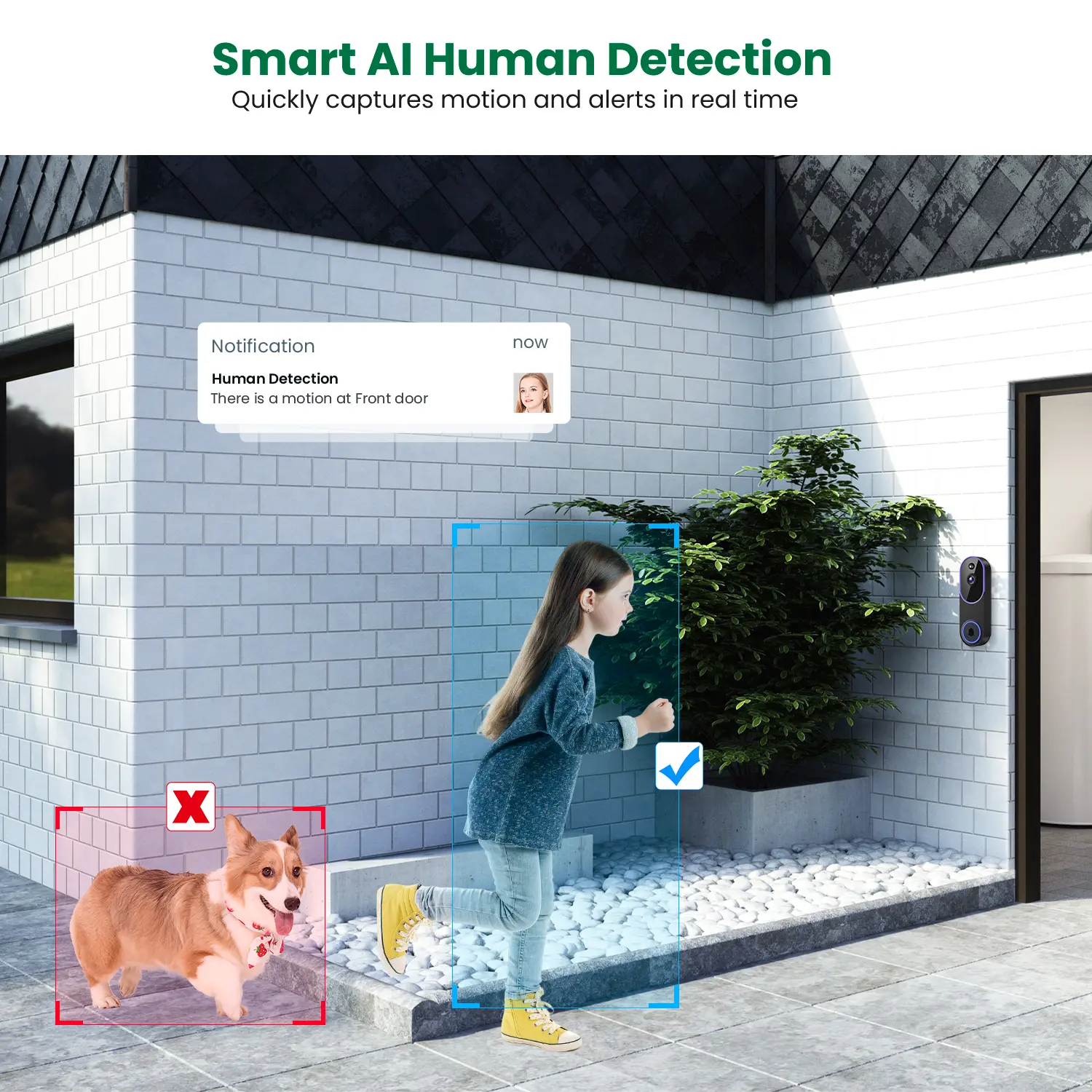AI-Powered Precision Human Detection: Harness the power of cutting-edge AI technology to accurately recognize human presence, while efficiently ignoring irrelevant motion such as cars and trees.