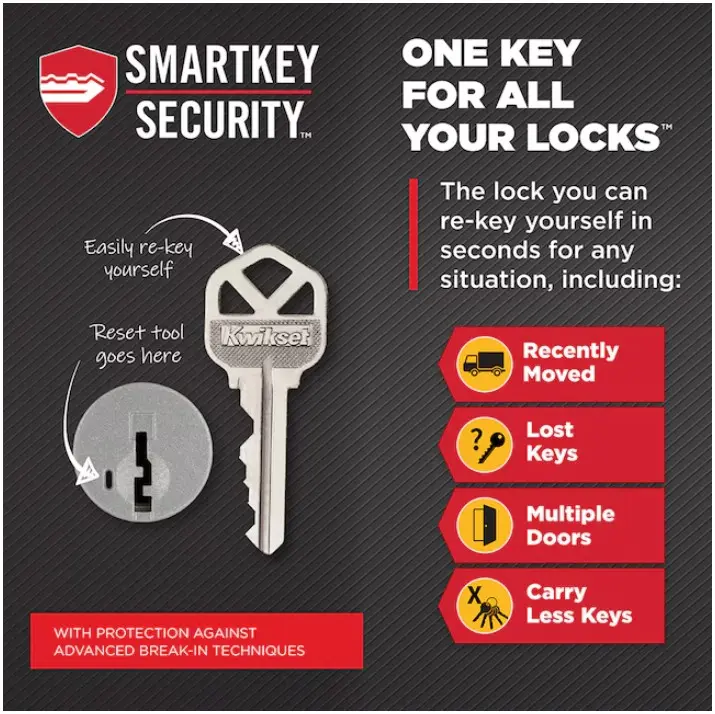 Kwikset’s SmartKey Security technology protects against advanced break-in techniques and allows you to re-key your lock yourself in seconds