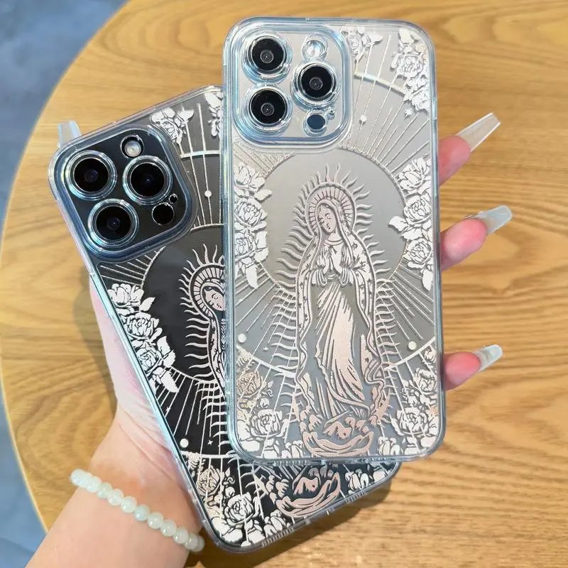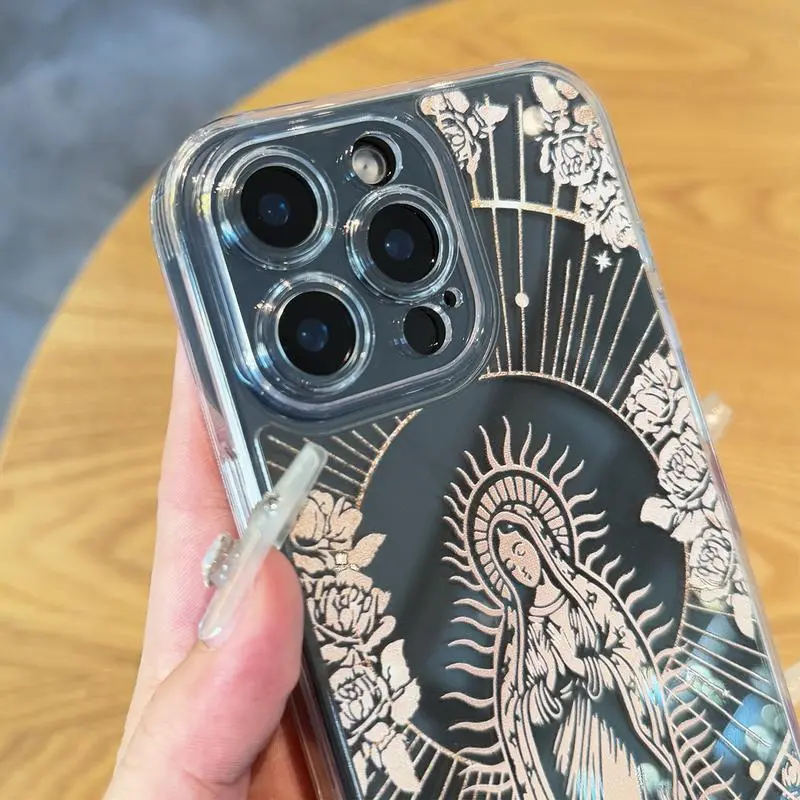 Looking to protect your iPhone while showing off a unique Virgin Mary pattern? This clear soft TPU case is just the thing. It wraps your phone in durable, shockproof coverage that guards against drops and bumps without hiding your phone's original beauty. Compatible with iPhone models 11 through 16 Pro Max, it fits snugly and precisely, so you can easily access buttons and ports without hassle. The crystal-clear design lets the elegant Virgin Mary print shine through, adding a subtle spiritual vibe to your everyday style. Plus, the flexible TPU material makes it easy to put on and take off, while providing reliable protection. Inside the box, you get a single Virgin Mary pattern phone case ready to keep your device safe and stylish. Whether you’re at work, out with friends, or just relaxing at home, this case has your back. Grab yours today and give your iPhone the protective cover it deserves with a touch of meaningful design!