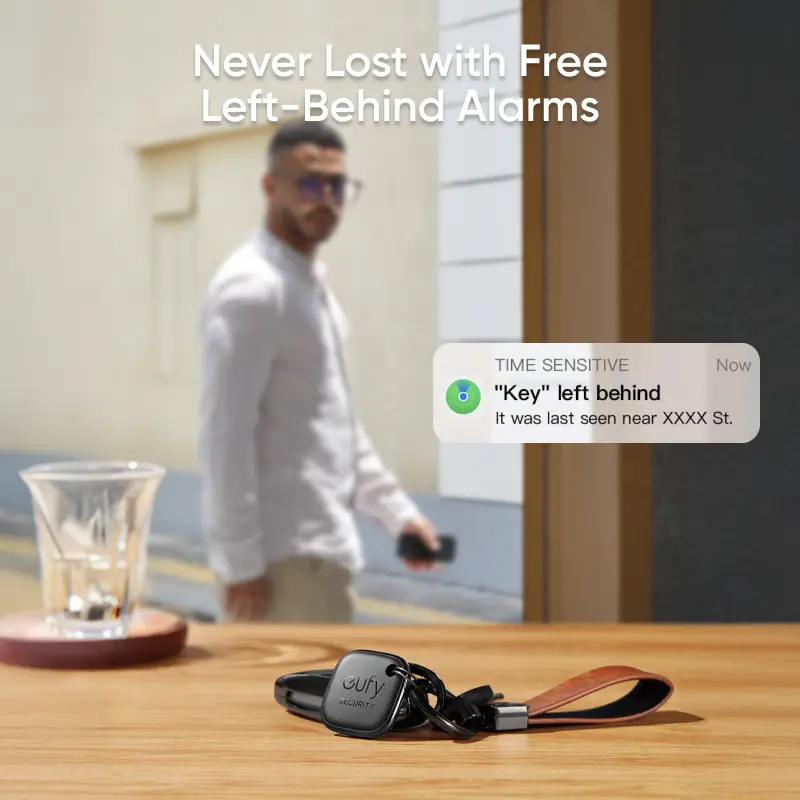 Ever lost your keys or luggage right when you're rushing out the door? The eufy Security SmartTrack Link is your new best friend for keeping tabs on your essentials. Designed exclusively for iOS users, it works effortlessly with Apple’s Find My app, giving you access to a vast network for pinpointing your lost items anywhere in the world. Whether it’s earbuds, luggage, or your phone, this Bluetooth tracker has your back. Double tap the device to ring your phone, even if it’s on silent—no more frantic searching! The loud alarm helps you locate your belongings even if they’re tucked away or covered. Plus, with free left-behind alerts through the eufy Security app, you’ll get notified before you leave something behind. The water-resistant design means it can handle a little rain without a hitch, and the replaceable CR2032 battery lasts up to a year, so you’re covered long term. Inside the box, you get one sleek black SmartTrack Link ready to pair with your iPhone. Stay connected, avoid losing your stuff, and share item locations with friends or family for extra peace of mind. Grab your SmartTrack Link today and make losing things a thing of the past!