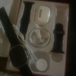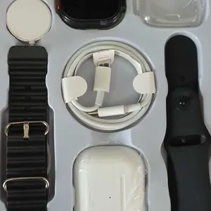 Includes a smartwatch, Bluetooth earbuds, protective watch case, Type-C charging cable, adapter, and audio support device—everything you need in one sleek set.