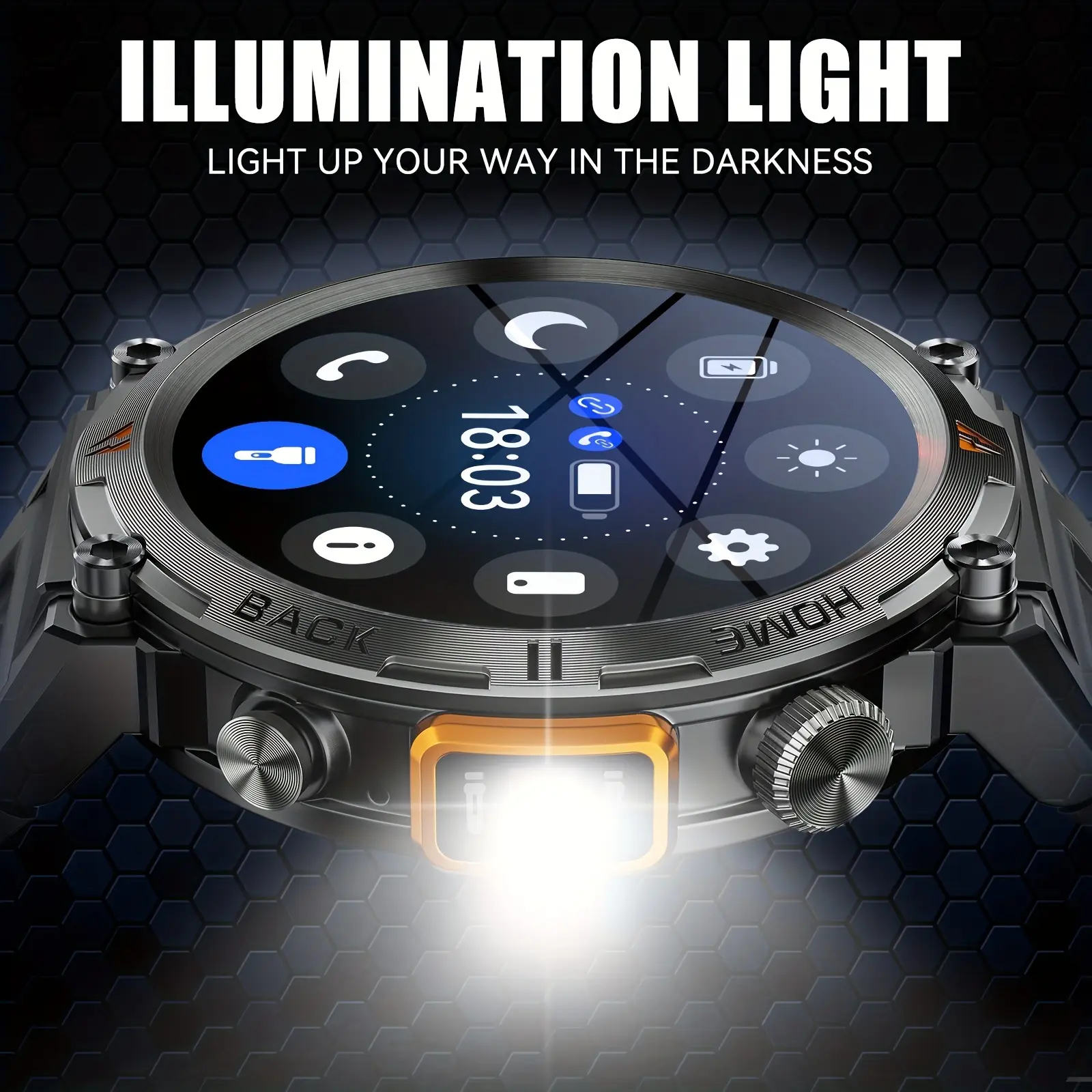 1.45 Inch Touchscreen Smart Watch with Flashlight - Fitness Tracker for Men, Answer/Make Calls,, Rechargeable Battery, Zinc Alloy Body, Silicone Strap, Ideal for iPhone & Android, Fitness Tracker Watch|Minimalist Watch Design|Durable Watchband, Smart Watc