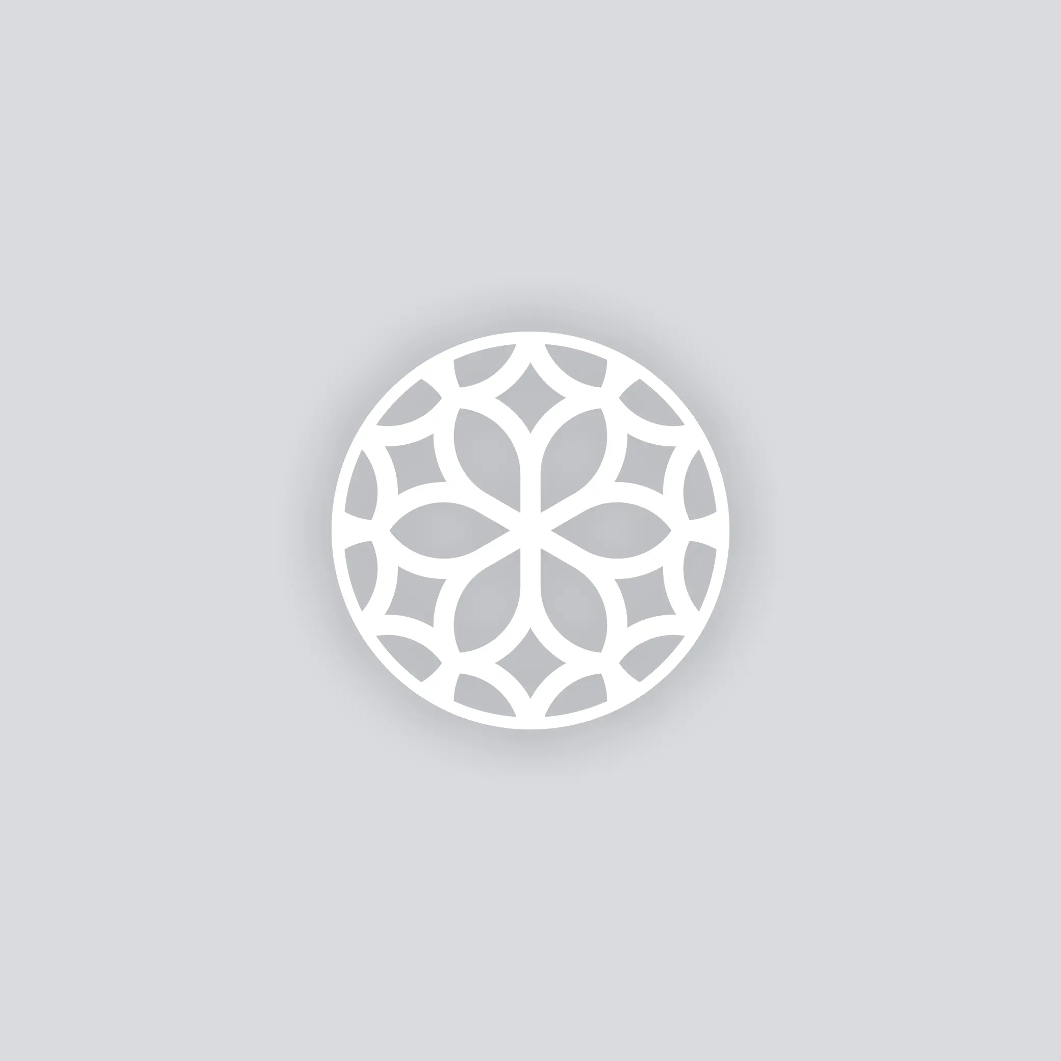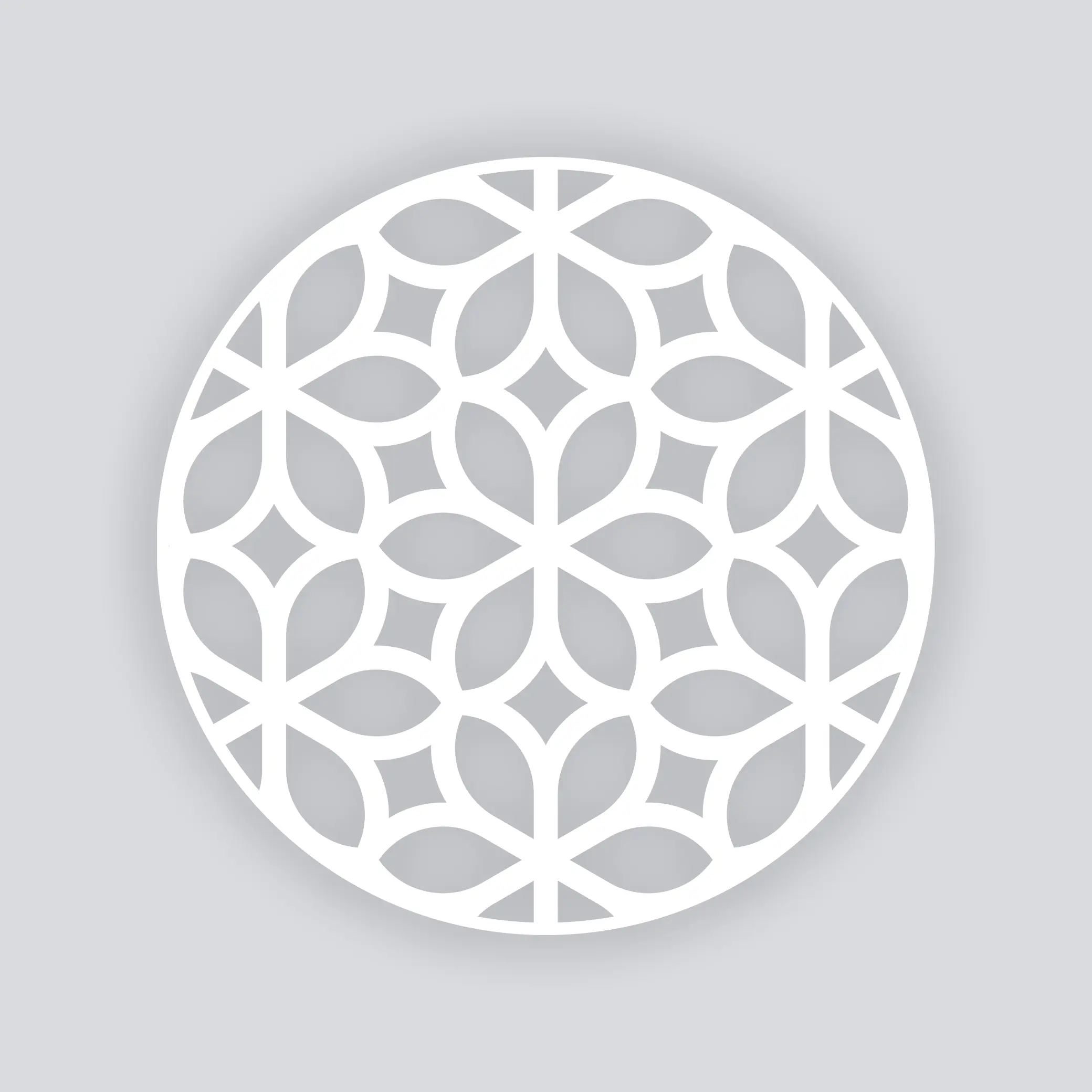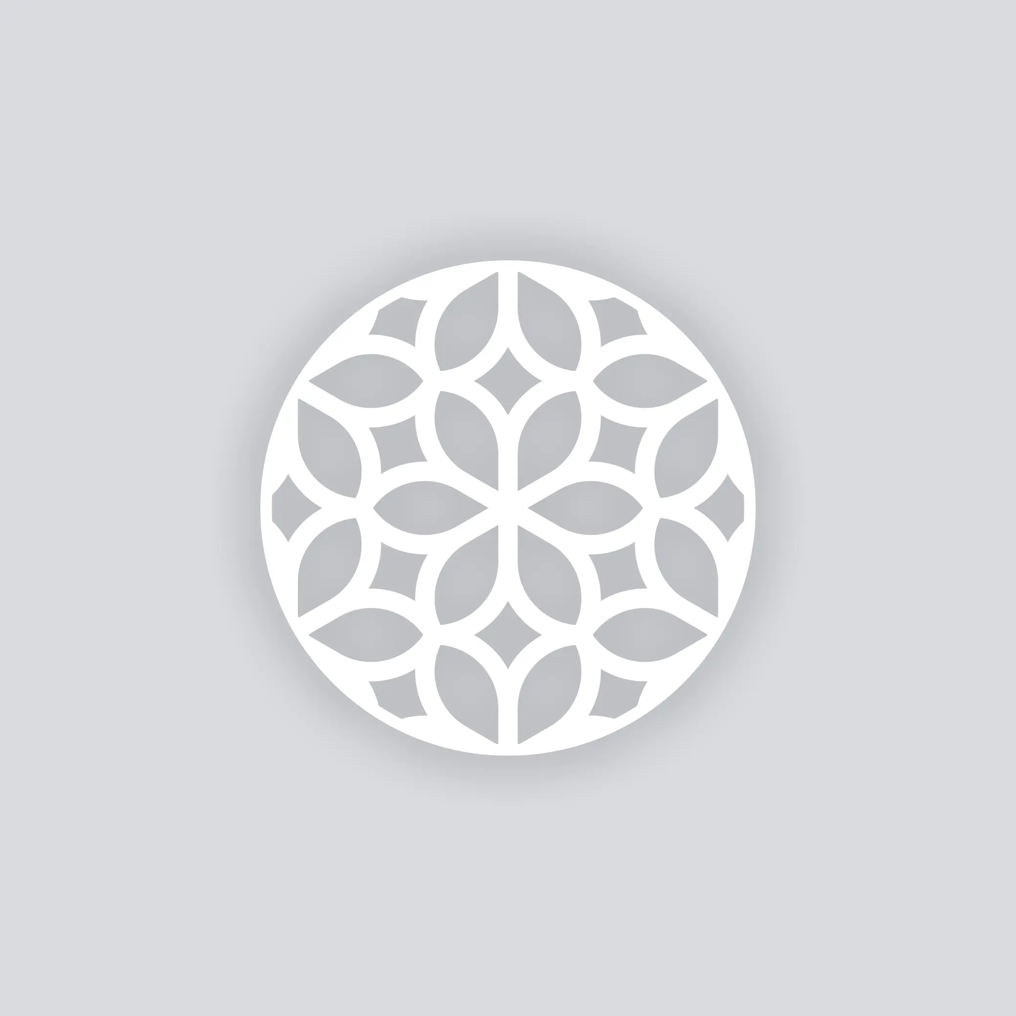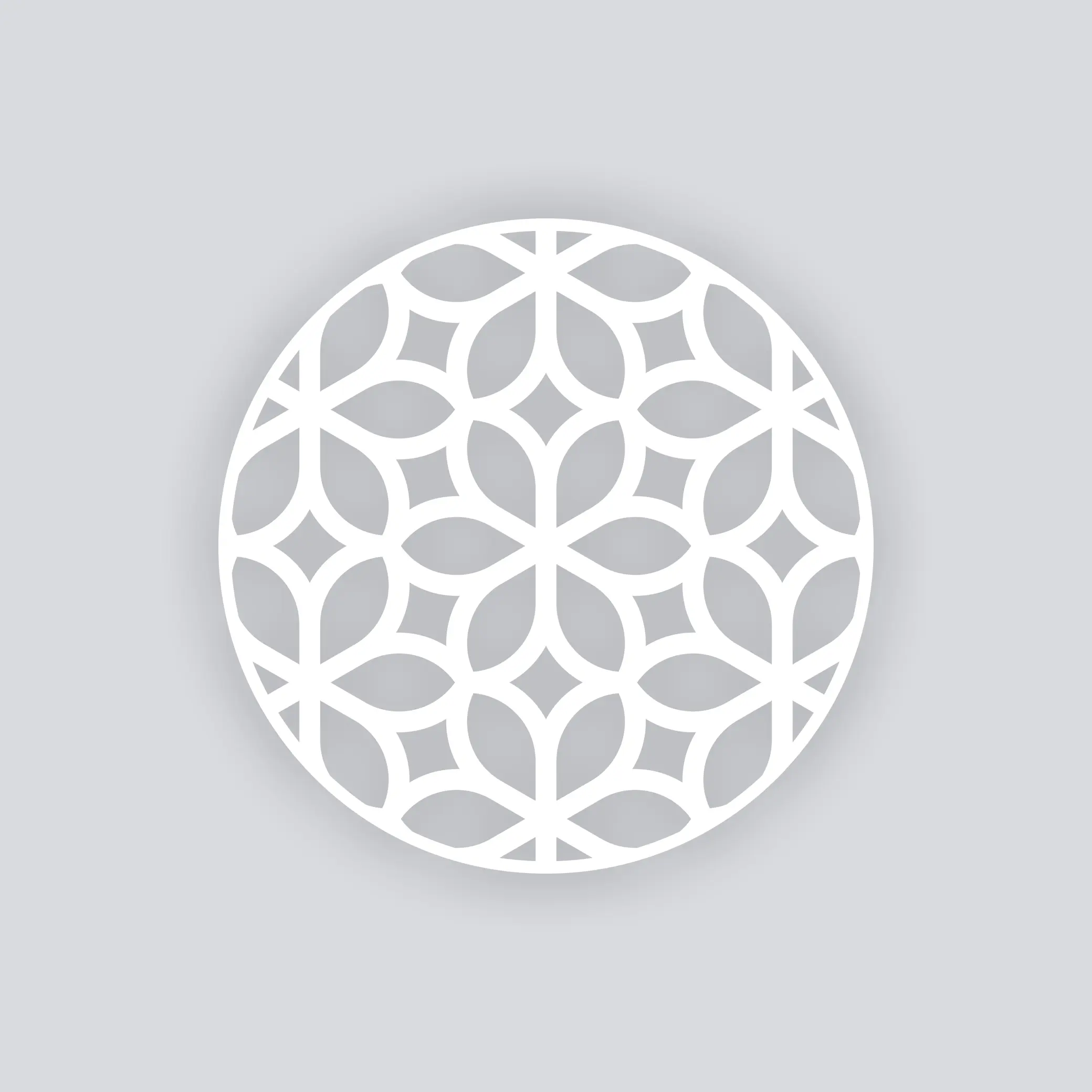 A sleek geometric bloom pattern built from repeating arcs and āpetalā shapes that lock together like a mosaic.