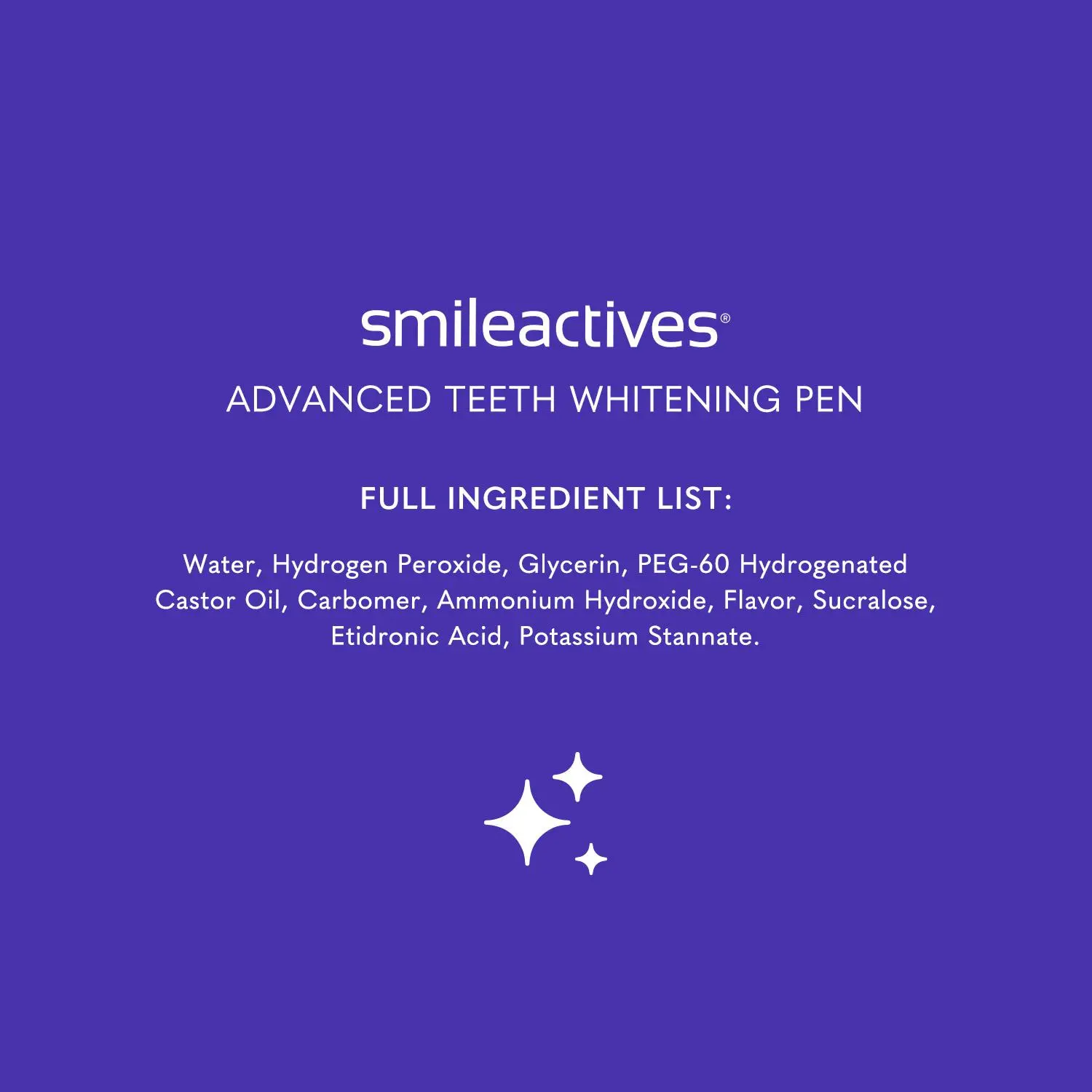 All Smileactives pens use hydrogen peroxide as opposed to carbamide peroxide used in other home teeth whitening products. After clinical trial, 100% of test participants reported having whiter teeth after 7 days.