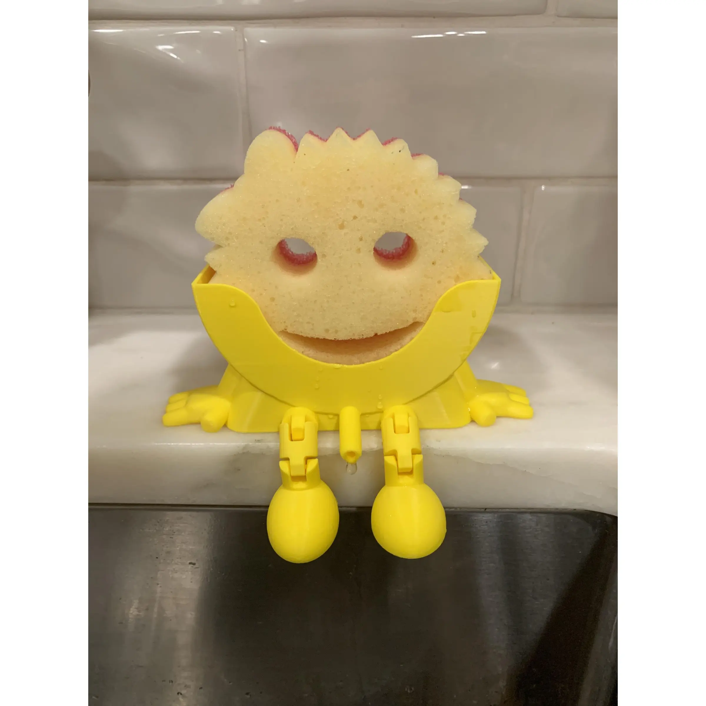 Smiley Dish Sponge Holder, Hinge Joint Adjustable Kitchen Sink Bathroom Sponge Rack, Drainage Slot Countertop Storage Box