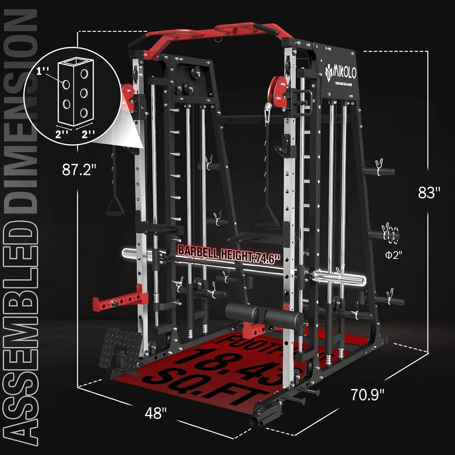 ·[Heavy Duty Quality & Detail]: Made of 50mm x 50mm commercial steel tube. The 12 connecting triangle pieces provide extra stability and stronger construction. Dimension:87.2 inch(H) x 71 inch(L) x 48 inch(W). The max capacity of the whole machine is up to 2200lbs, feel free to enjoy your training experience with this big guy!