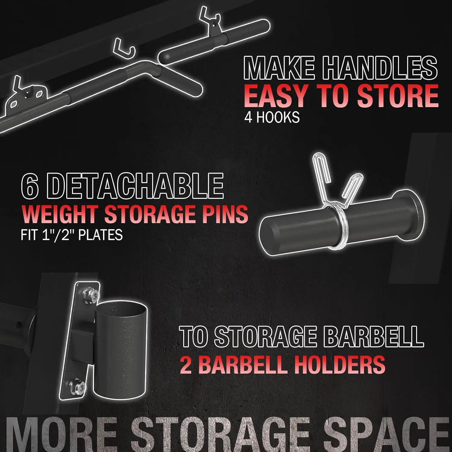 ·[Upgraded Convenient Design]: Unlike the older one, the rear top guide is equipped with 4 hooks. You can put bars/handles on it, which is very convenient when you are training exercise. And it can save a lot of space. Besides, handles on the pulley sliding sleeves make the moving more smoothly. You can also do lat pull-down with leg hold down attachment.