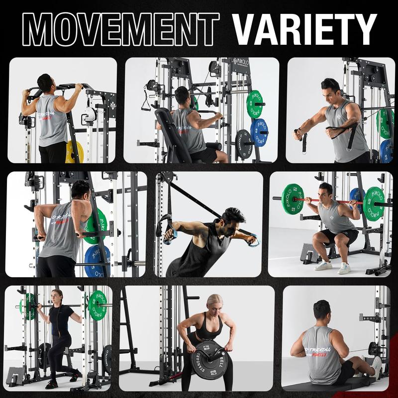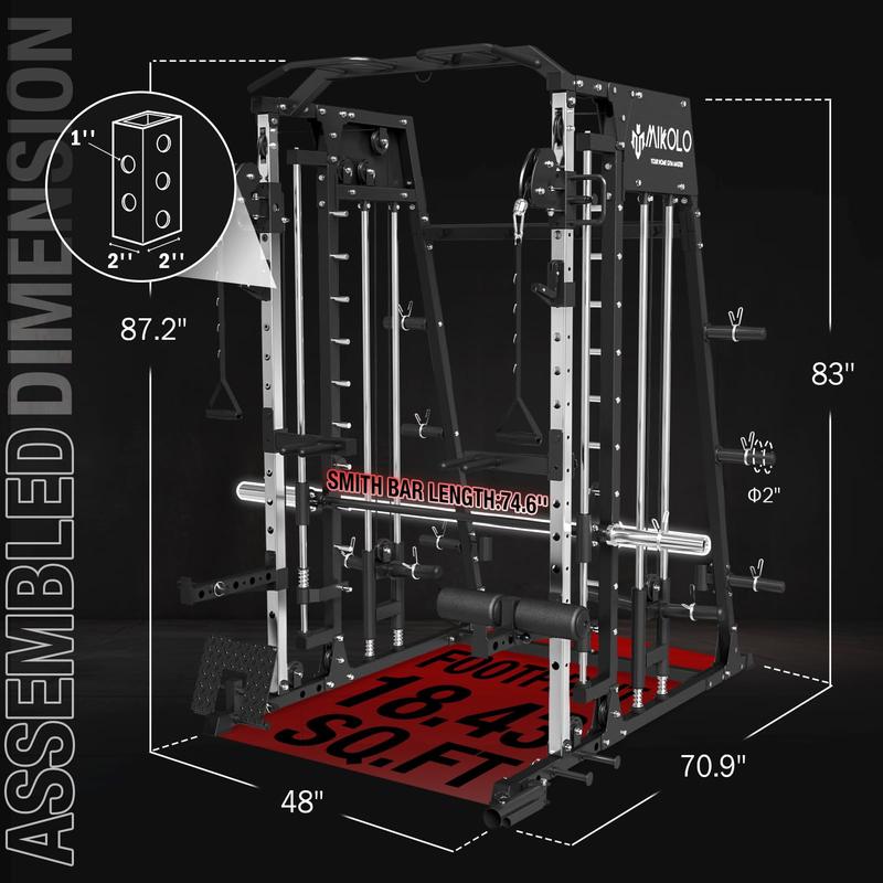 Β·[Build Your Dream Home Gym]The M4 combines a power cage, Smith machine, cable crossover, cable station, and pull-up station in one systemβdelivering unlimited exercise options in limited space. Pre-drilled resistance band holes expand your training possibilities, letting you perform squats, presses, pull-ups, cable flys, and more.