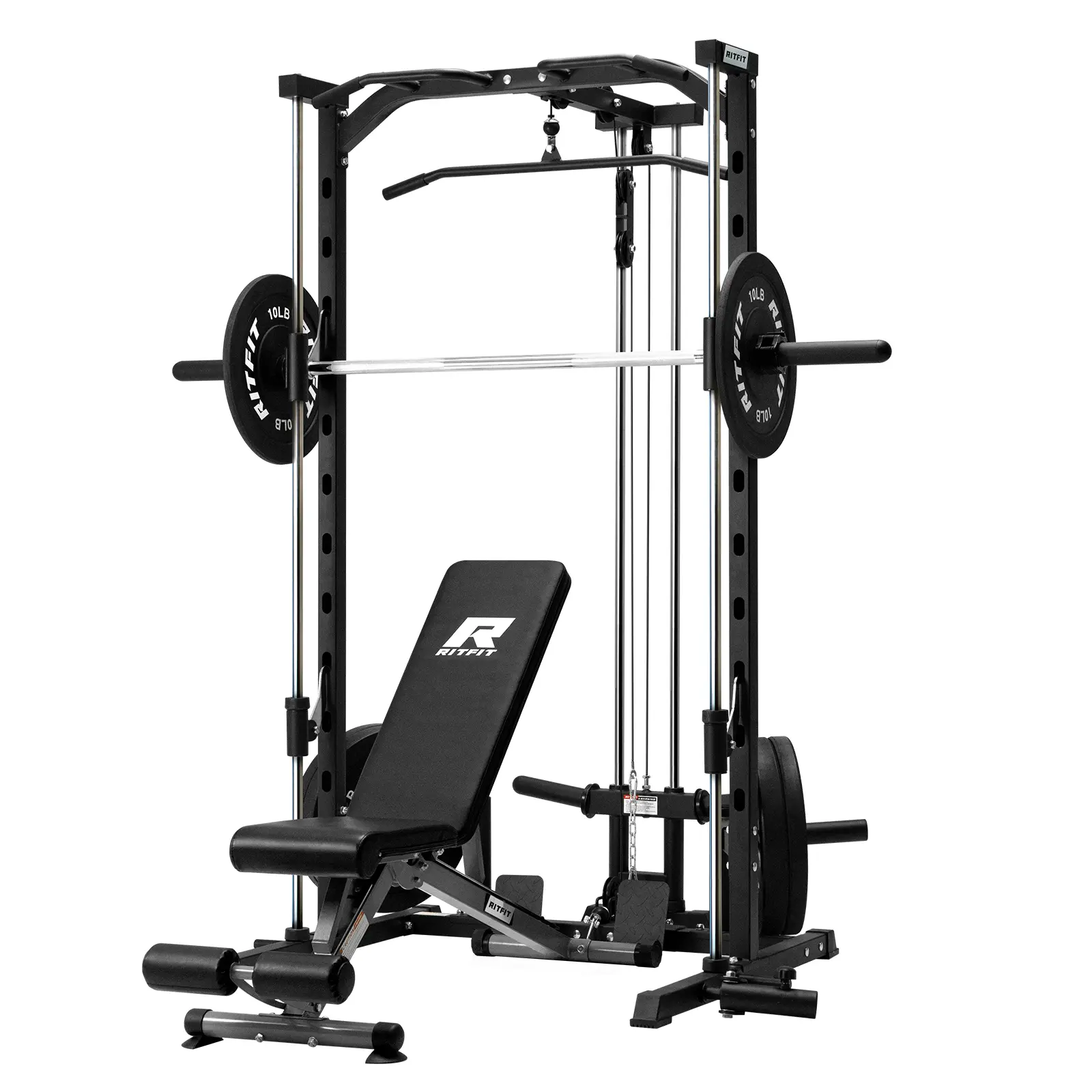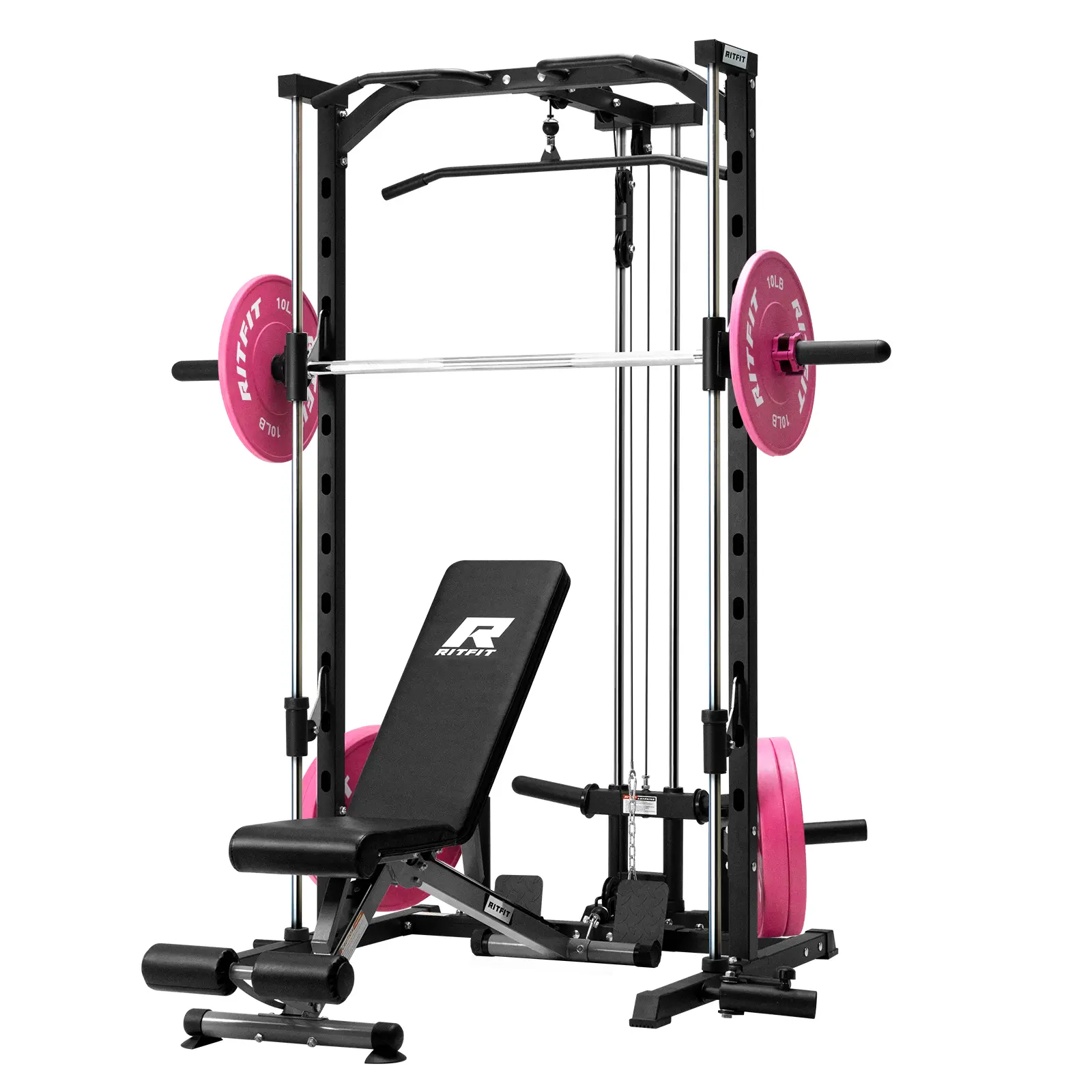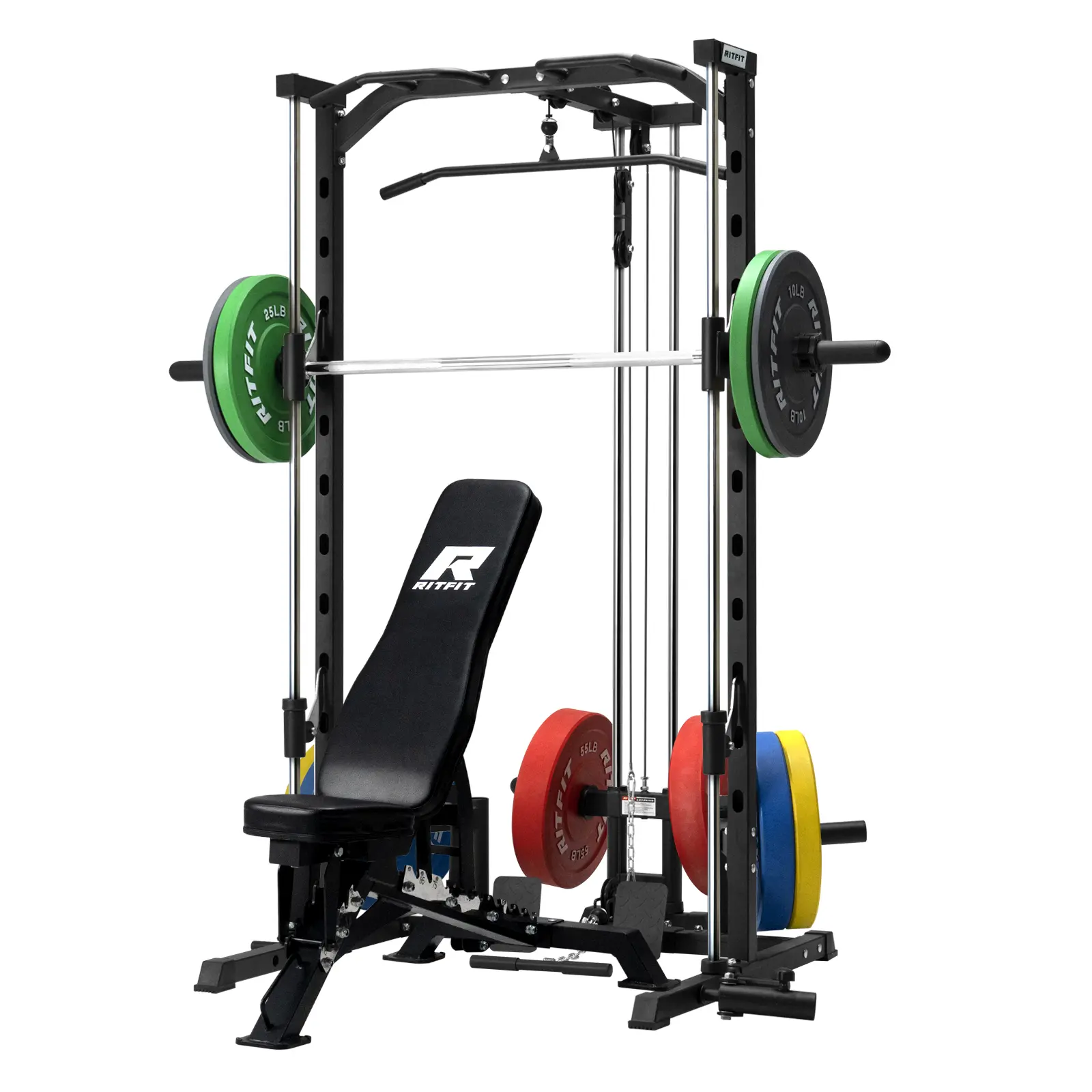 Build Your Dream Home Gym Want to save your space, worth your money? The RitFit Smith Machine with a smoother lat pull-down system is the perfect addition to your home gym. This equipment is made specifically for home gyms. It offers a wide range of exercises for your whole body. Whether you're a beginner or a professional, our Smith machine is designed to meet all your workout needs! All-In-One Equipment for Your Home Gym The Equipment is versatile, capable of supporting a wide range of exercises. From strength training routines like weightlifting and deadlifts to cardio activities such as rowing, the possibilities are endless. This comprehensive fitness smith machine has been specifically designed to meet all your workout needs right from the comfort of your own home. It's great for adding this machine to your apartment/garage/home gym.