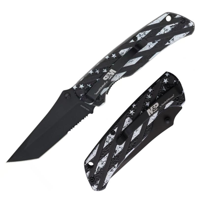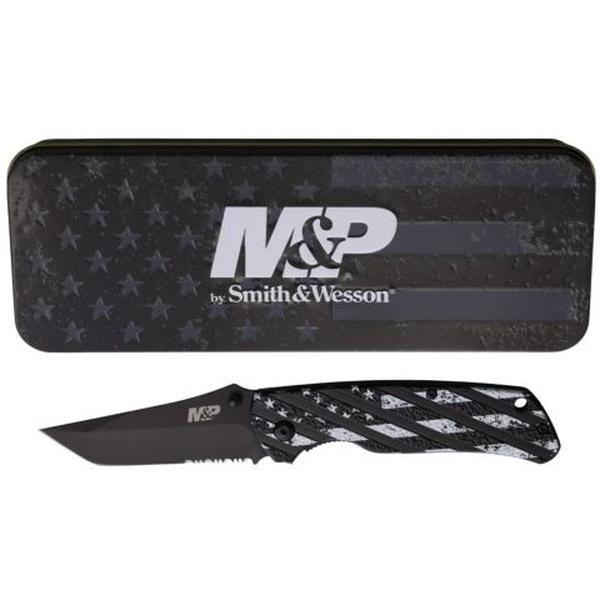 Make precise cuts with the Smith & Wesson American Patriot Flag Knife Set. The oxide stainless-steel blade resists rust and stains. The straight blade with 1-inch serration cleanly cuts through material. The HD printed polymer handle shapes to your hand for comfort. Opens with 1 hand and features a liner lock for safety.