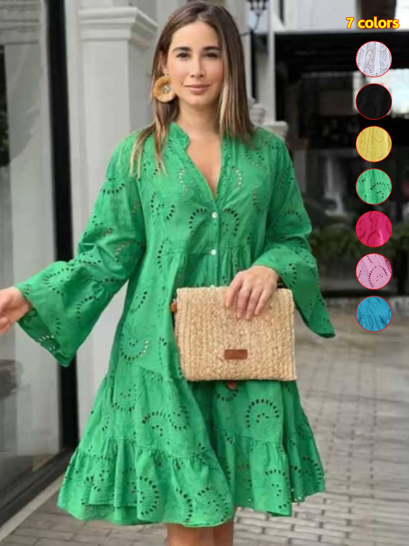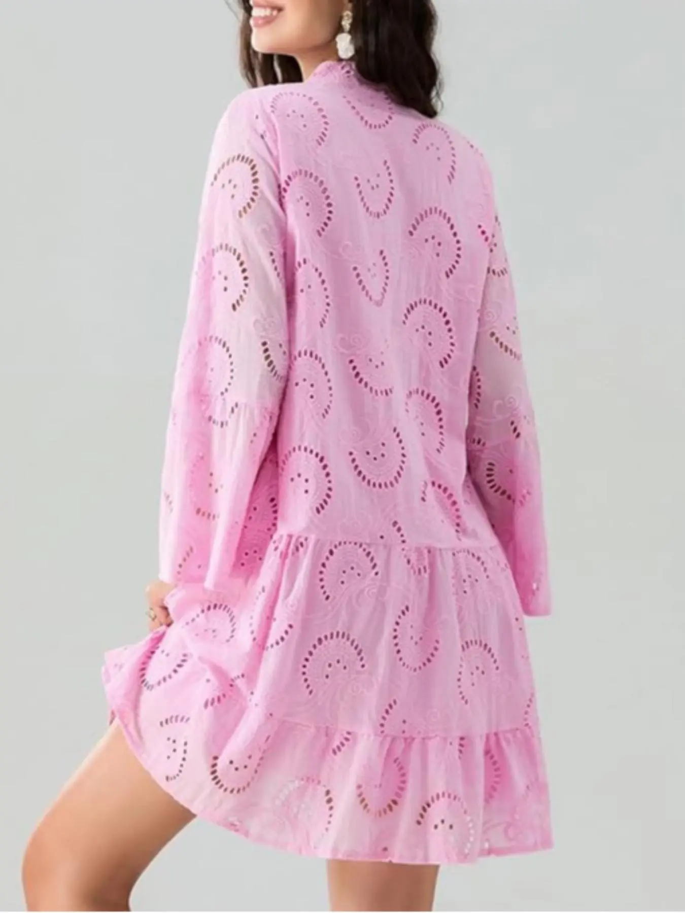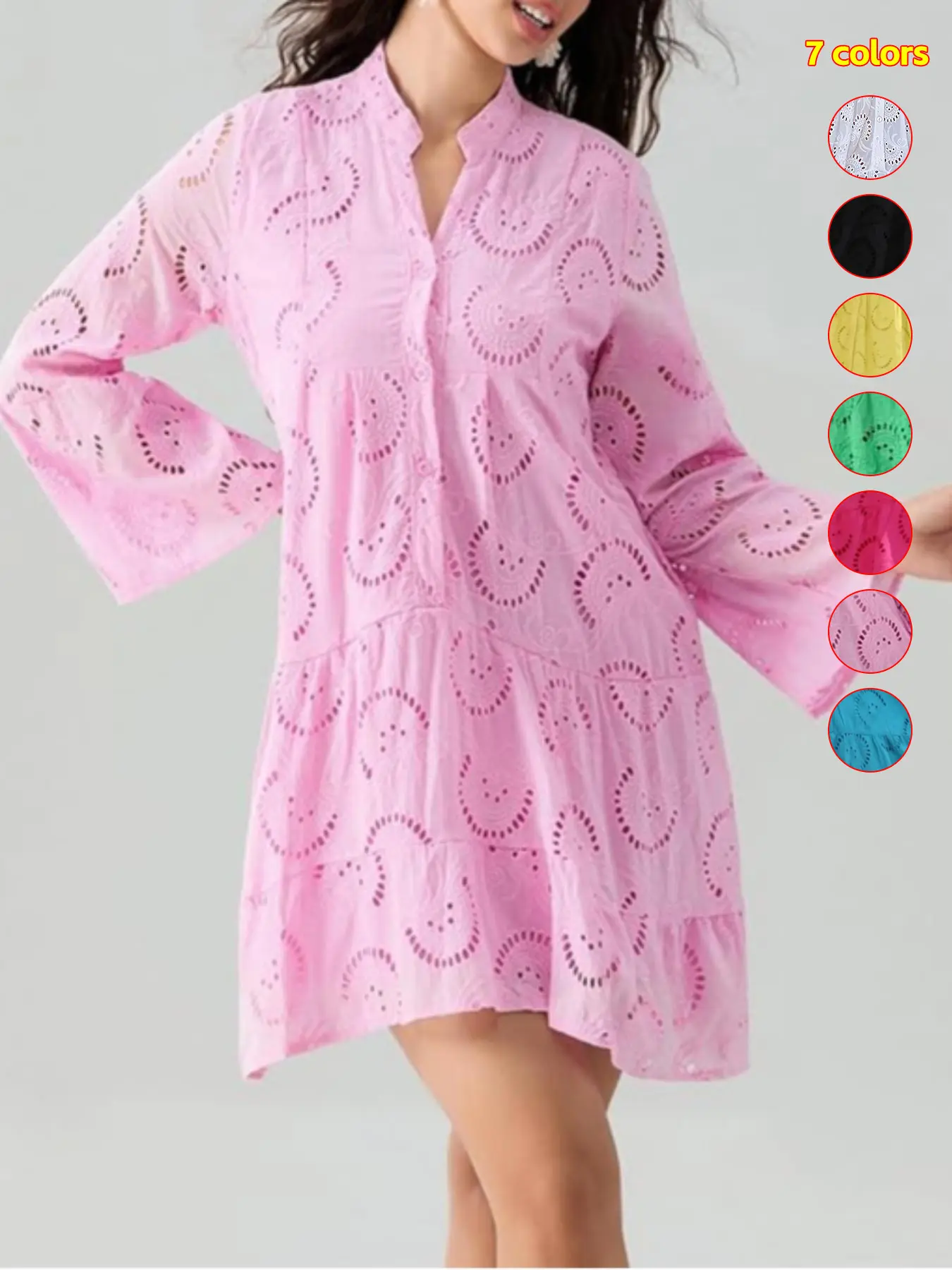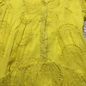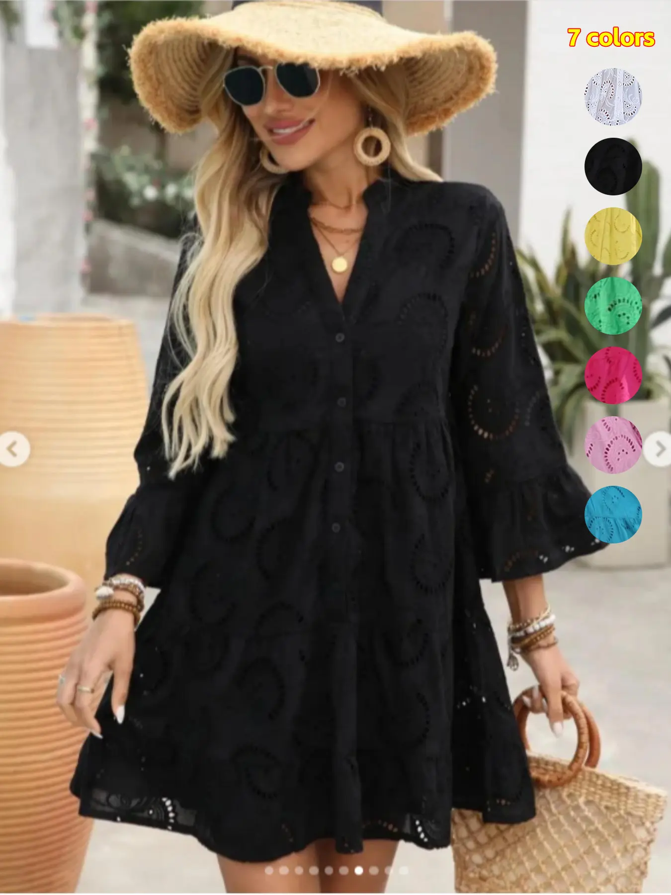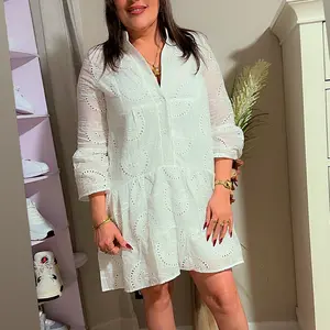 Does not look like the picture at all!!!. The eyelets have back linen so it doesn't show skin. The dress is not flowy. Its very stiff. The arm length is longer. I'm 5'1" 135lbs