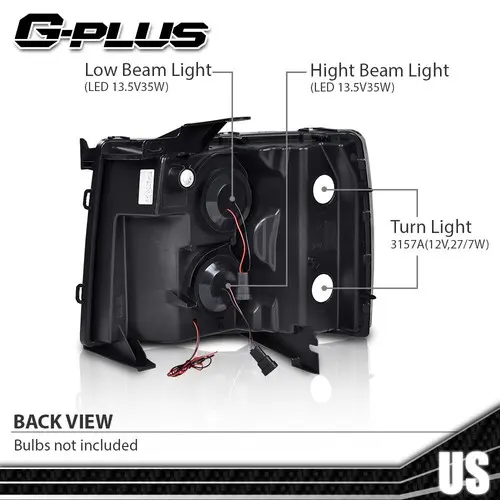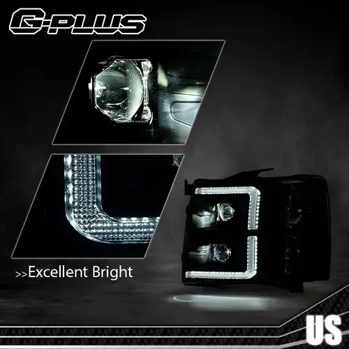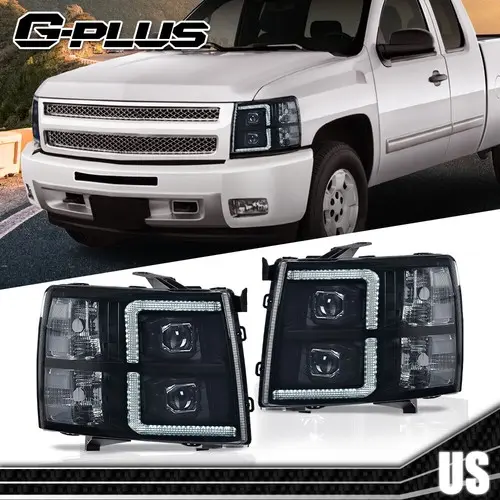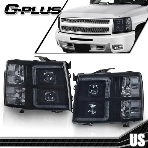 Fit For 07-14 Chevy Silverado Smoke Lens Headlights Lamps Black Housing