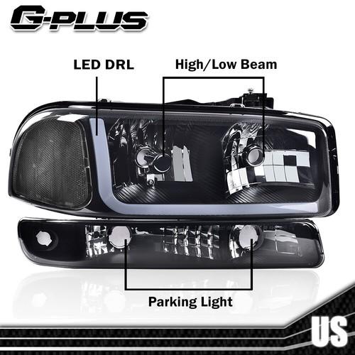 5. Smoked Lens LED Headlights w/ Turn Signal Lamps Fit For 1999-2007 Sierra Yukon