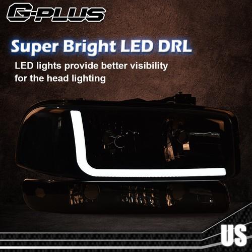 Smoked Lens LED Headlights w/ Turn Signal Lamps Fit For 1999-2007 Sierra Yukon
