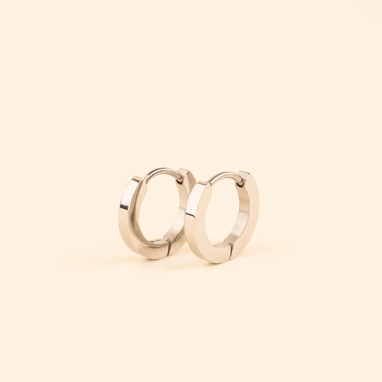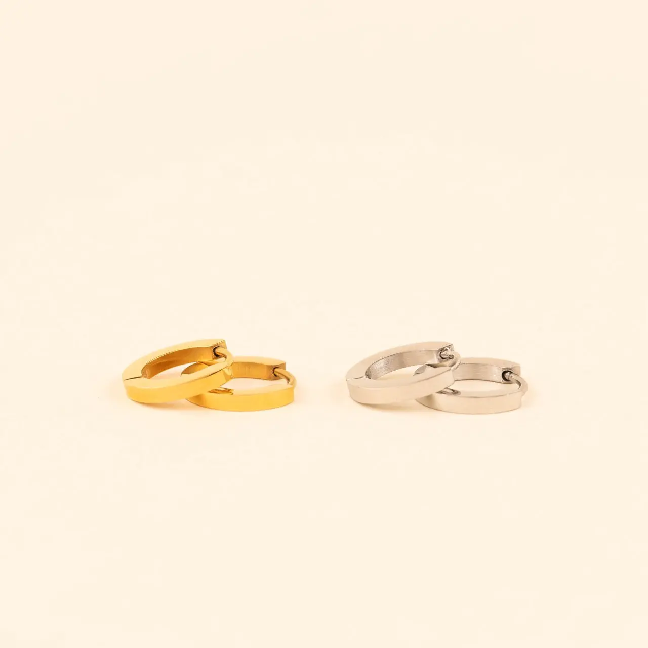 My favorite basic, live these more than the rectangle hoops, the flat front and long shape makes it perfect for showing off a chunky charm or two.