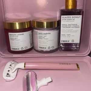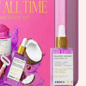 Get the smoothest shave ever with this ultimate shave kit, for all skin types! Truly's Smooth Legend Shave Kit features a pre-shave scrub to exfoliate, shave butter for a smooth glide, after shave oil to soothe skin and prevent ingrowns, and magnetic razor for a silky smooth, long-lasting shave without painful nicks. All wrapped up in a luxe pink lunchbox!