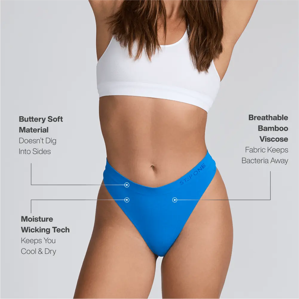 Introducing our new Blue Lagoon SmoothFit Thong Underwear from Step One, where comfort meets sensuality in the most eco-friendly way possible. Designed to make you feel effortlessly confident, our thong underwear offers a seamless and minimalistic silhouette that accentuates your natural curves.