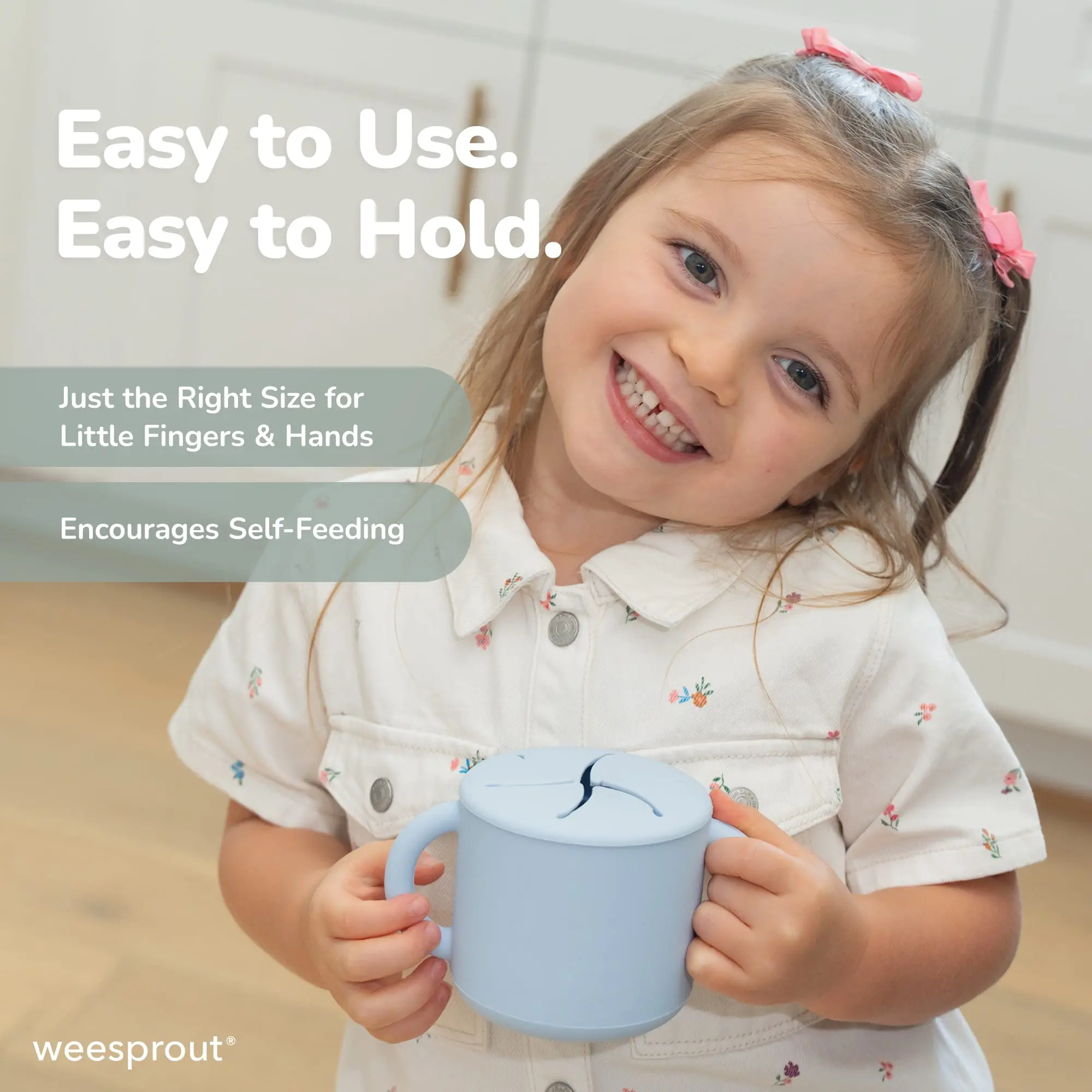 WeeSprout Snack Containers, Food Grade Silicone Cups, Spill-Proof Tops for Toddlers & Babies, Set of 2 Snack Catchers