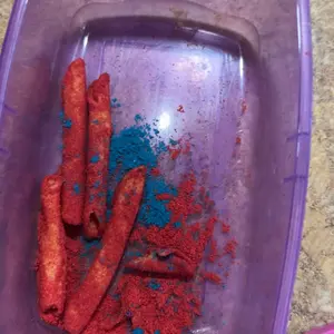 Dosent tast much like takis in my opinion the blue one tastes like cucumber maybe i just haven’t ate blue takis in a while but the red tasted like salt not very pleasing with this one it comes with a plane bag with nothing in it