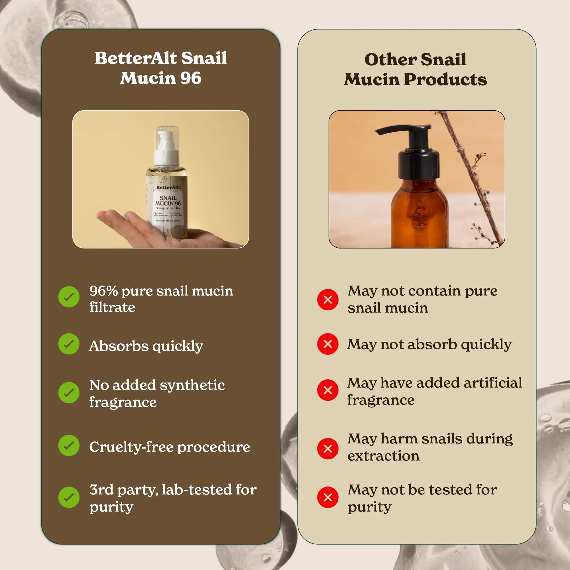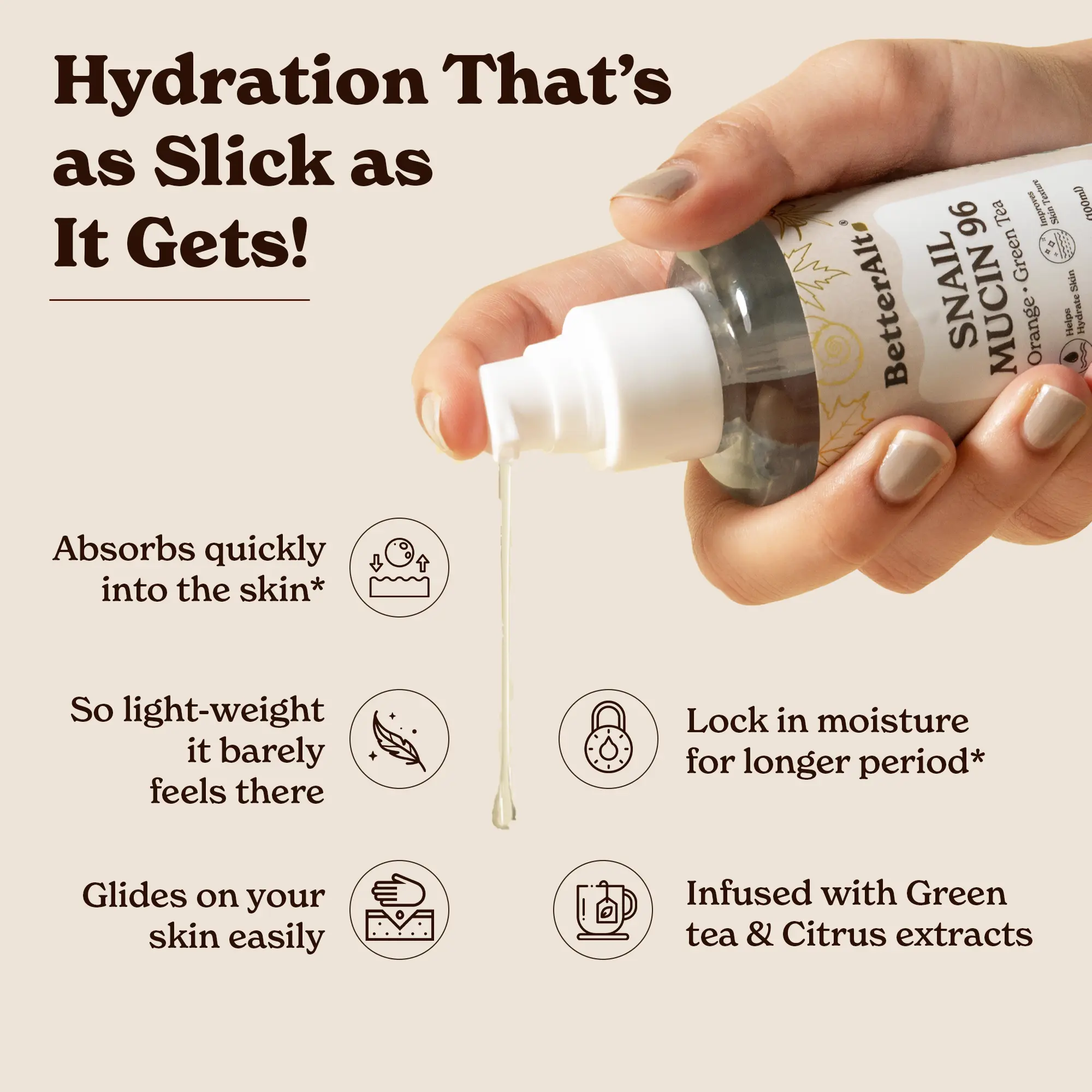 @Better Alt Snail Mucin Helps You Achieve That Glass Skin Look. A Unique Formula for Dewy & Smooth Skin. 96% pure Snail mucin filtrate, Deeply hydrate & plump skin.@BetterAlt Beauty @BetterAlt Shop