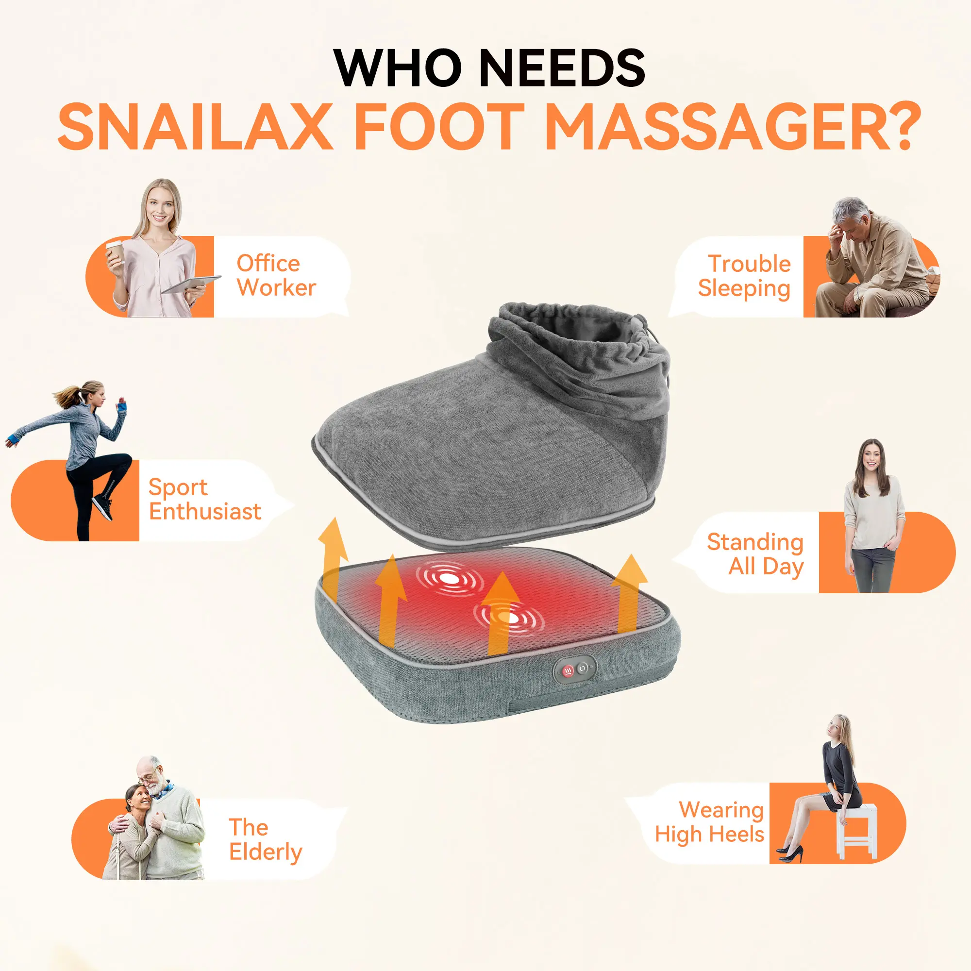 ·Soothing Heat: Snailax foot massager with heat features two adjustable heating levels, allowing you to choose the perfect amount of warmth to keep your feet cozy and comfortable during use, making it ideal for cold weather or relaxation after a long day. A perfect heated foot warmer or foot heater in winter.