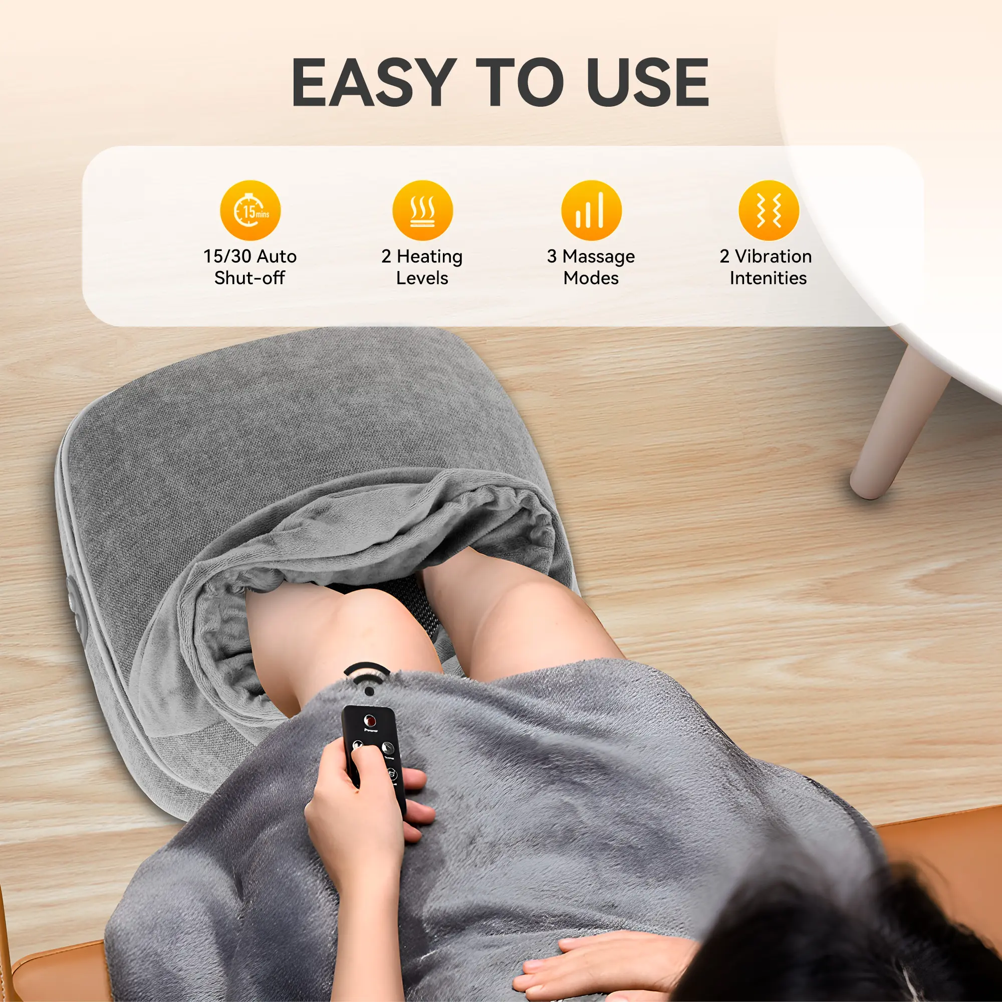 ·Relaxing Vibration: Enjoy the benefits of three modes of vibration, each designed to target and alleviate different areas of tension and stress in your feet. Customize your vibration foot massage experience to achieve the ultimate relaxation and relief from discomfort.