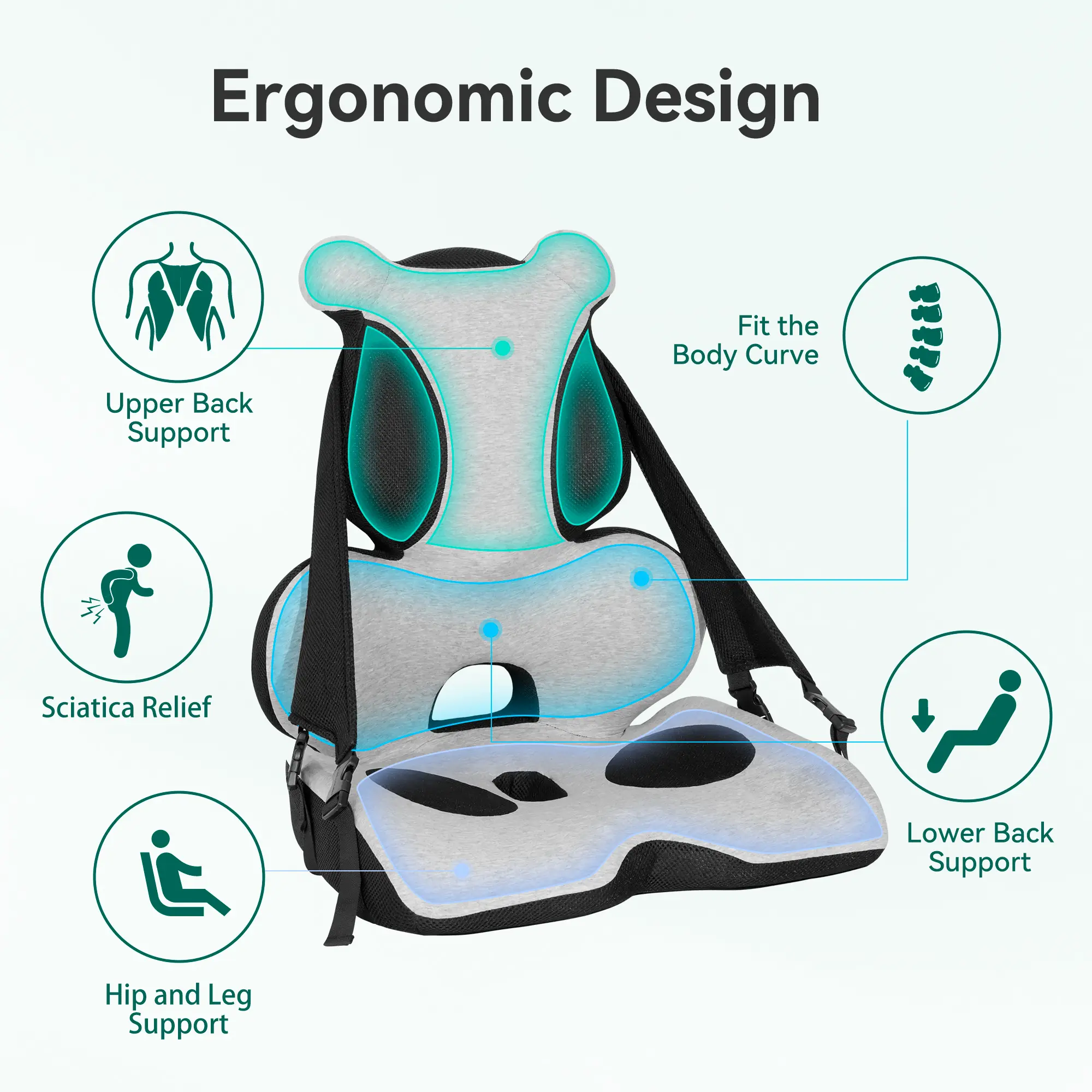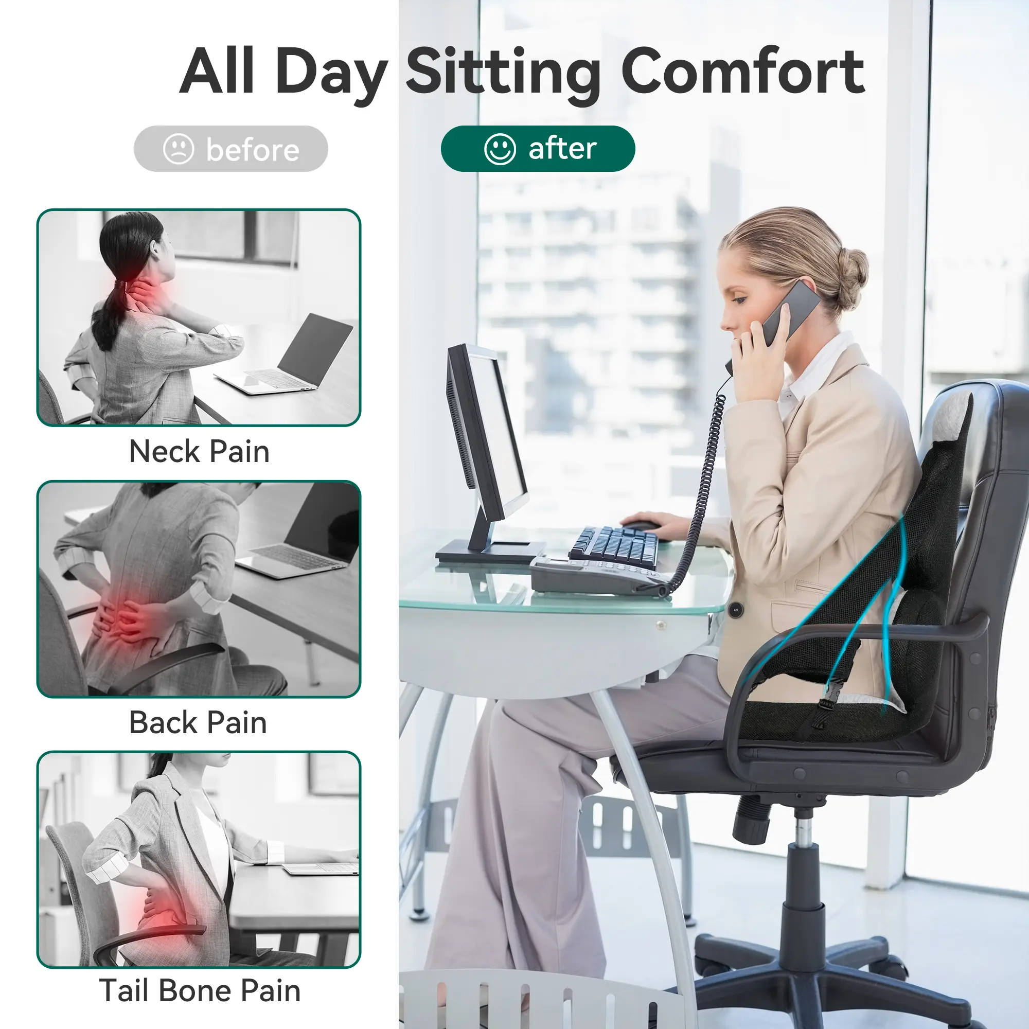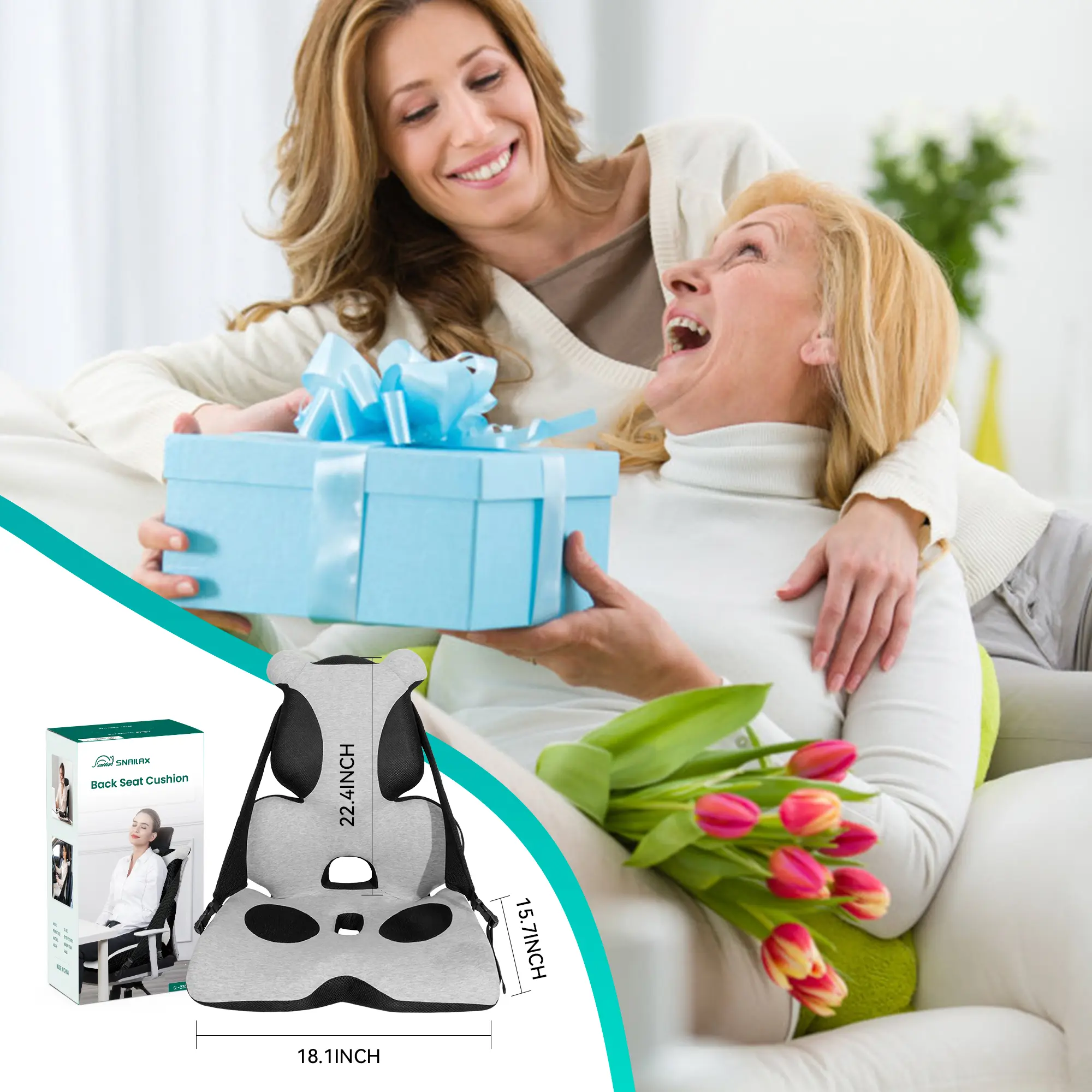 ·User-Friendly Design: Designed with a non-slip feature and adjustable straps, Snailax back and seat cushions offer convenience and stability. And machine washable feature for easy maintenance. One-piece design make it more convenient for any type of chair.
