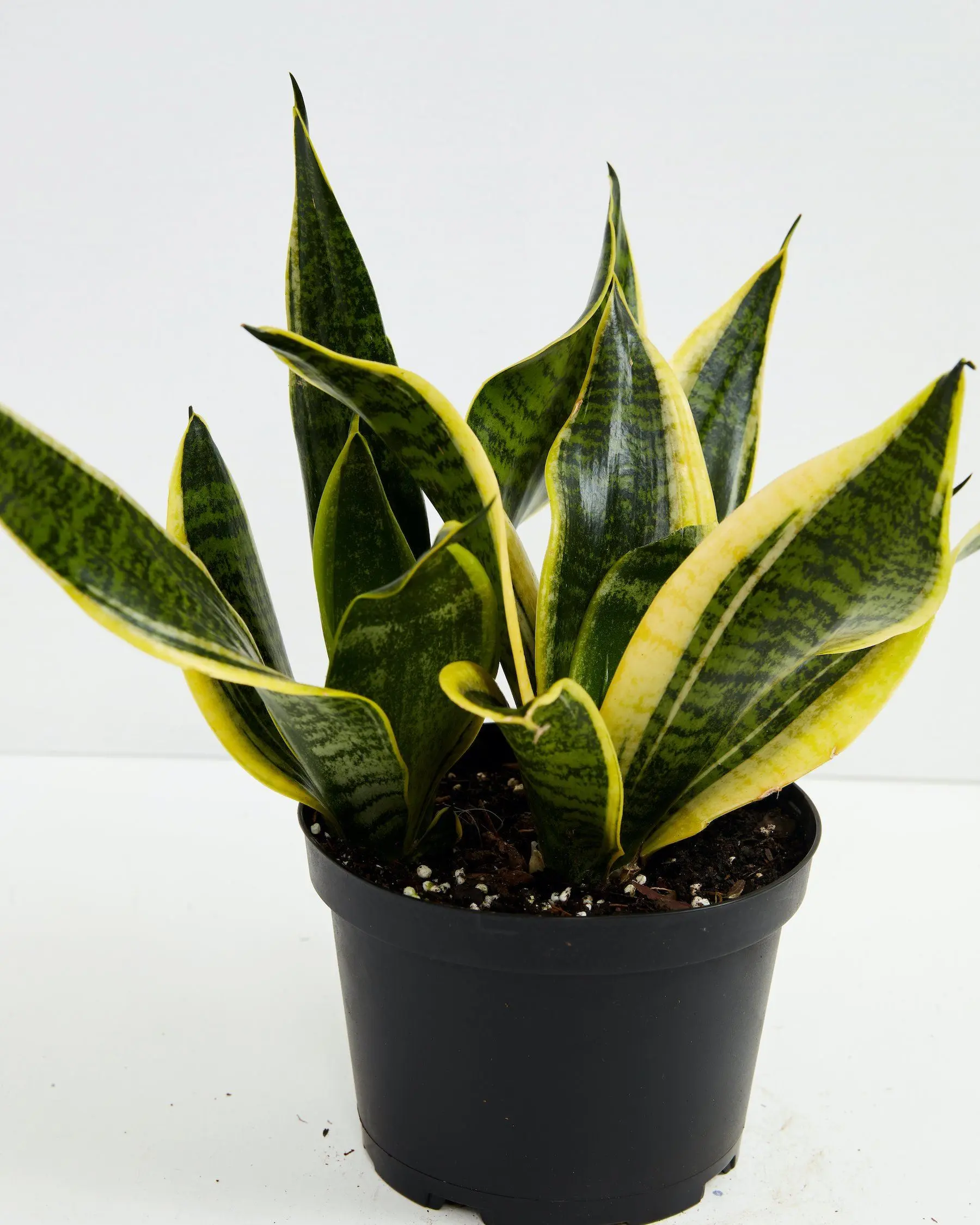 A little shorter and a little broader, this Snake Plant still has the beautiful light green leaves with mottled silver but adds a bit of extra gold around the edges for good measure. Extremely adaptable and tough as nails when it comes to care, this is one of the best (and easiest) plants to gift because they look good anywhere and is happy even in the lowest of light. Extra points for air purification, too.