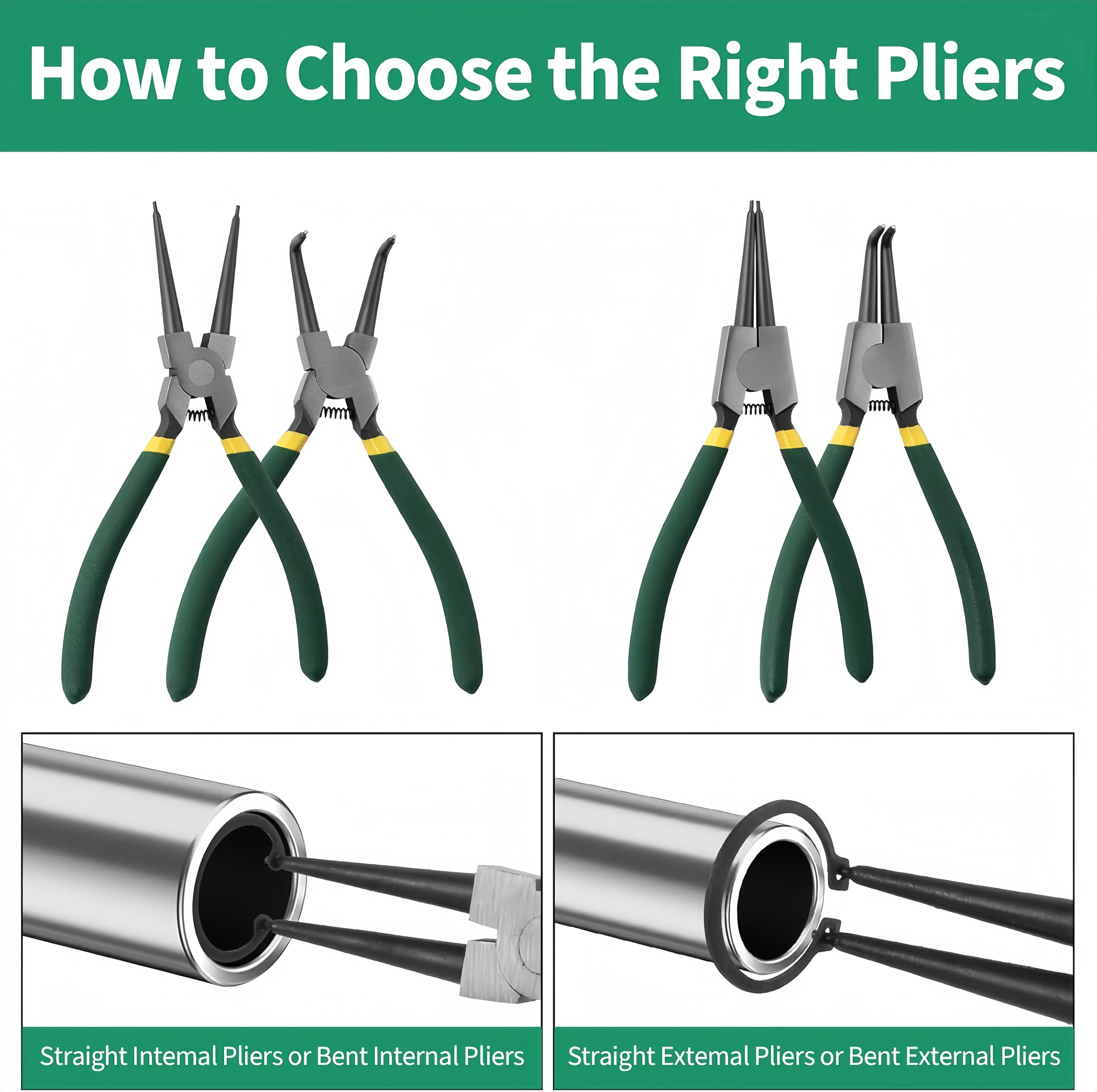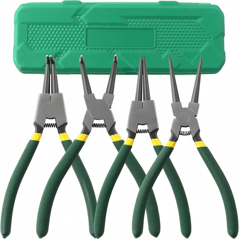 4-Piece Snap Ring Pliers Set - High-Quality Carbon Steel Tools with Straight & Curved Claws for Automotive Repair - Professional Hand Tool Kit Heavy Duty