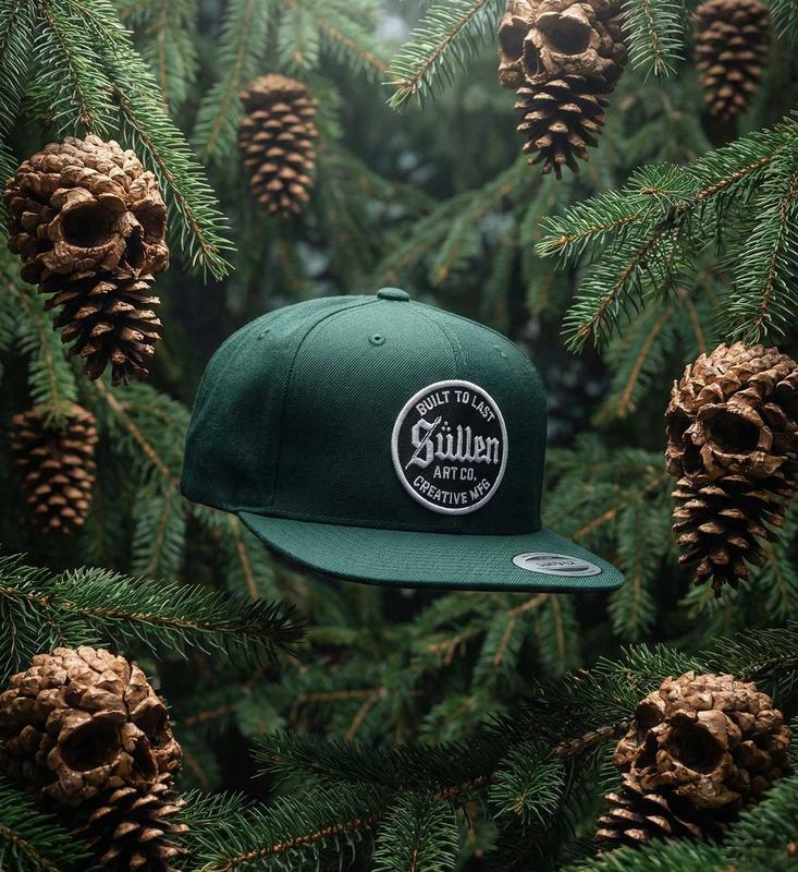 The Built Snapback has a front sewn on patch and the Sullen Badge on the underbill!