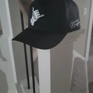 This black hang loose hat fit perfect. Love the material and breathable holes. Very well made. The details on the logo and front look great!