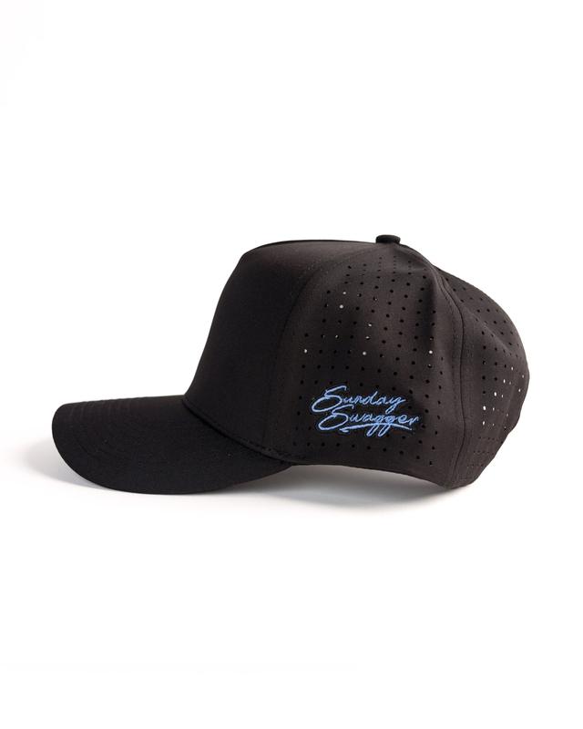 Great black hat for any occasion. Loving the subtle light blue palm and logo.