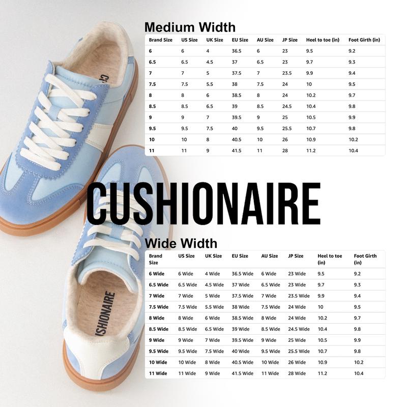 These are cute and comfy. While I was wearing them, someone mistook them for the $$$ brand! So that made me smile! I didnāt know what to expect since this was my first pair of Cushionaire, but Iām for sure happy with them. I ordered an 8, I normally wear an 8, fit seems right on point. They are great to dress up shorts or jeans and great to dress down a dress.