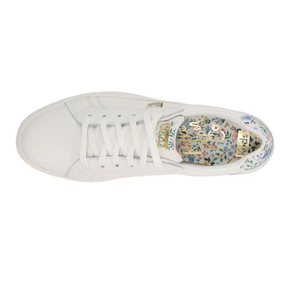 Keds sleek modern court shoe gets a seasonal update. With clean lines and a streamlined silhouette, the Pursuit lace-up sneaker has that goes-with-everything classic minimalist design, which is perfectly complemented by Rifle Paper Co's beautiful Bramble Fields print accents on the heel tab and tongue. Ready to pair with nearly anything in your closet, this Pursuit easily gives your entire wardrobe a warm-weather refresh. Plus, the soft lining, cushiony footbed, and lightweight outsole will keep you extra comfortable, so you can really take on the day.