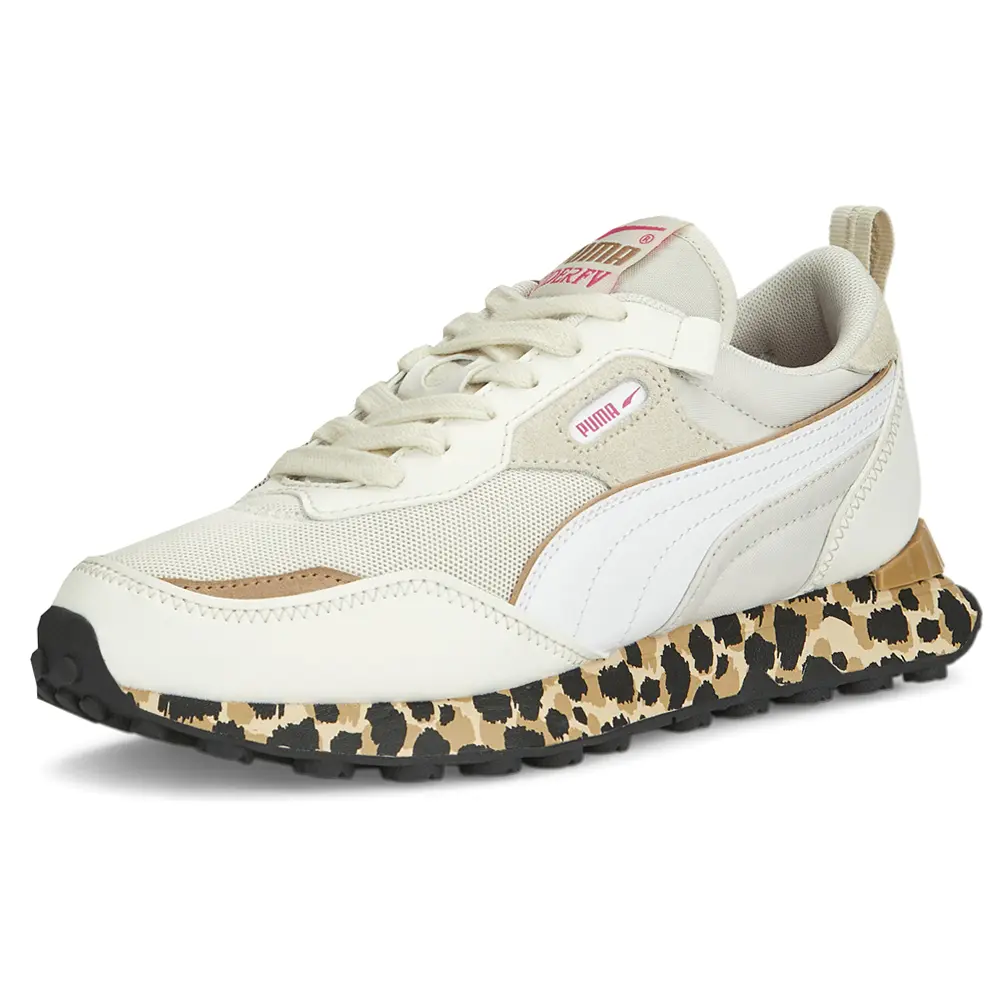 Unleash your inner animal with these fierce and fun sneakers. Combining a Rider FV retro-futuristic silhouette with an animal-print midsole that really pops, this is a shoe that takes your day-to-day and turns up the volume.