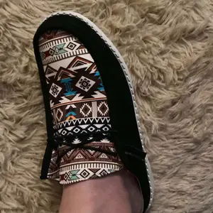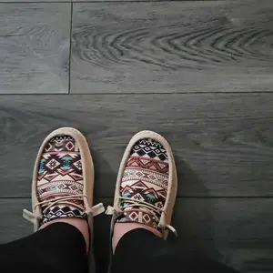 Buy 2 sizes up. This is one size up and a lil too small. Pretty though. Not the most comfy. Def not as comfy as hey dudes. These are more like Hey DUDS. Not too shabby though for an alternative.