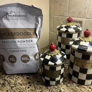 Love my snickerdoodle protein powder! Featuring my dog named Snickerdoodle! It’s like your lips delicious (although Snickerdoodle the dog did not get to try it)!