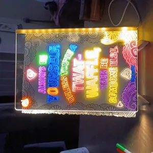 The Snofrid Message Board is an acrylic dry erase board with a stand, markers, cleaning cloths, and tracing paper. It's erasable, reusable, and perfect for kids' learning. Ideal for birthdays, Halloween, and Christmas, it's a decorative neon sign. This board enhances organization and creativity.