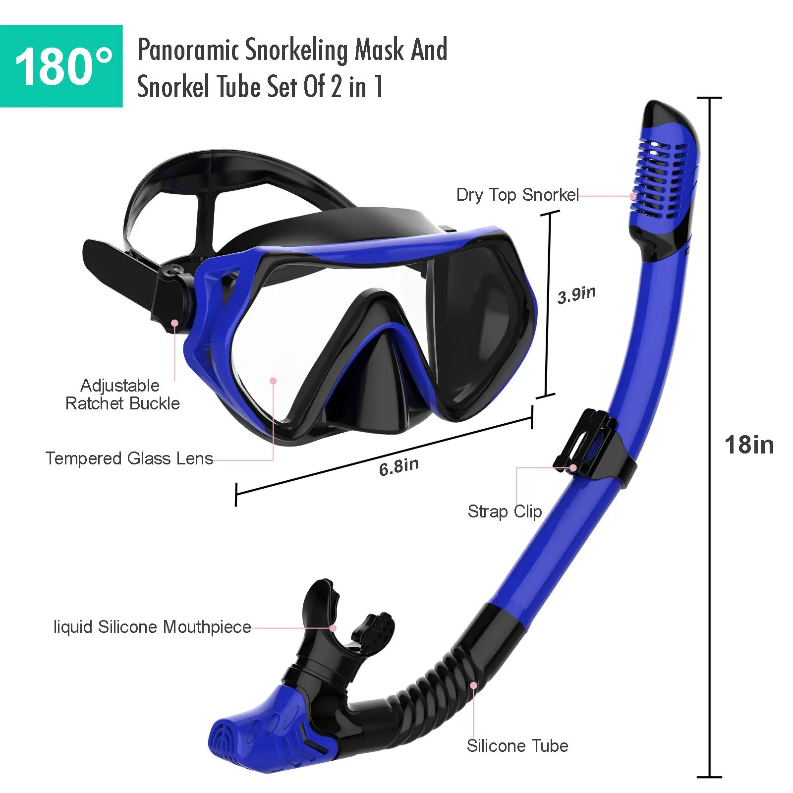 ·Embrace the beauty and wonder of the underwater world with our 180° panoramic snorkeling mask and snorkel set. Dive in and make every moment count!