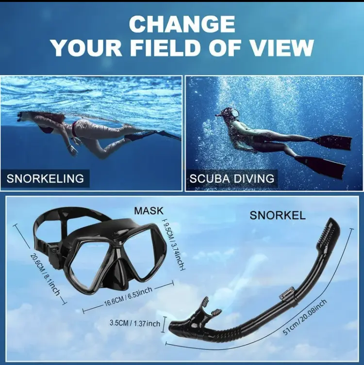 ·HD durable & anti-fog tempered glass Lenses,our set ensures maximum durability and clarity. The lenses are treated with advanced anti-fog technology to minimize fogging, ensuring uninterrupted underwater sightseeing.