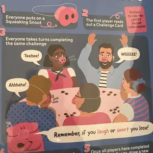 Get ready to laugh (and snort!) with Snort Funny! Players complete silly impressions and ridiculous challenges while trying to keep a straight face. The one with the most mud tokens wins! This hilarious party game is perfect for family nights, holidays, birthdays, sleepovers, or any time you need to turn boredom into belly laughs.