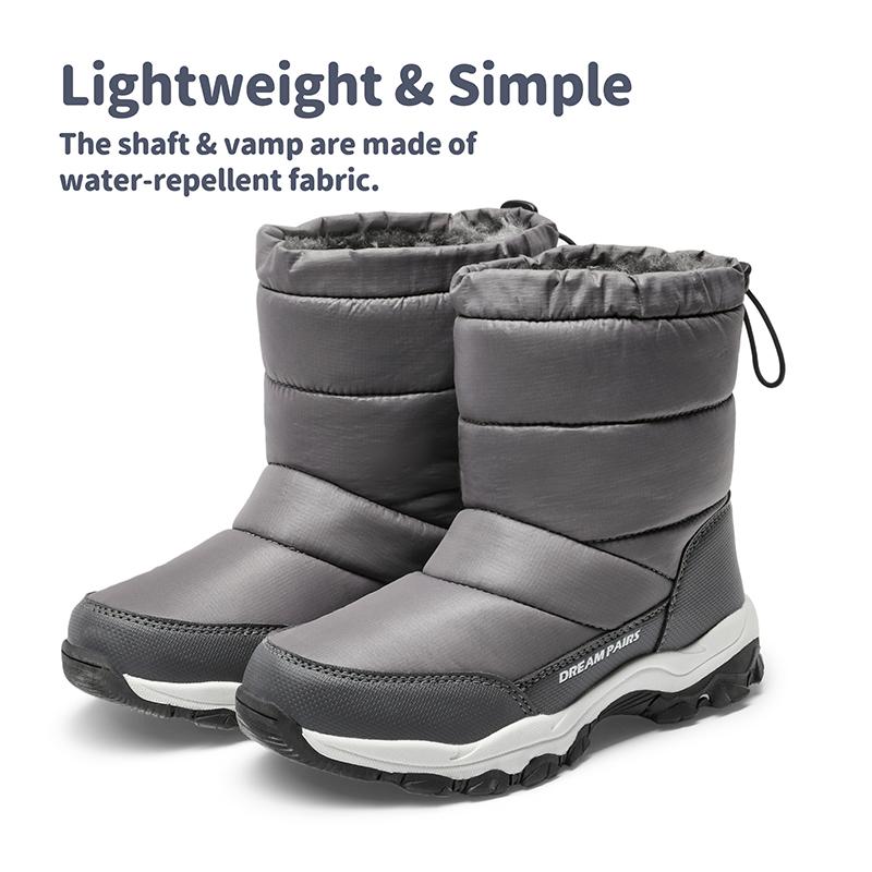 [ Lightweight & Simple Design ] : The upper of these snow boots are made of lightweight water-repellent fabric with reinforced stitching